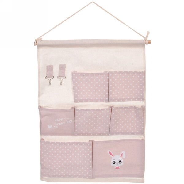 Карман настенный 'Зайка' имеет восемь карманов, что позволяет удобно распределить ваши вещи. Он легко крепится на стену с помощью текстильных полосок и металлических зажимов, что делает его установку быстрой и простой. Благодаря деревянной перекладине в верхней части, органайзер надежно держится и не падает. Этот товар идеально подходит для детской комнаты, прихожей или даже ванной, добавляя в ваше пространство нотку уюта и игривости.