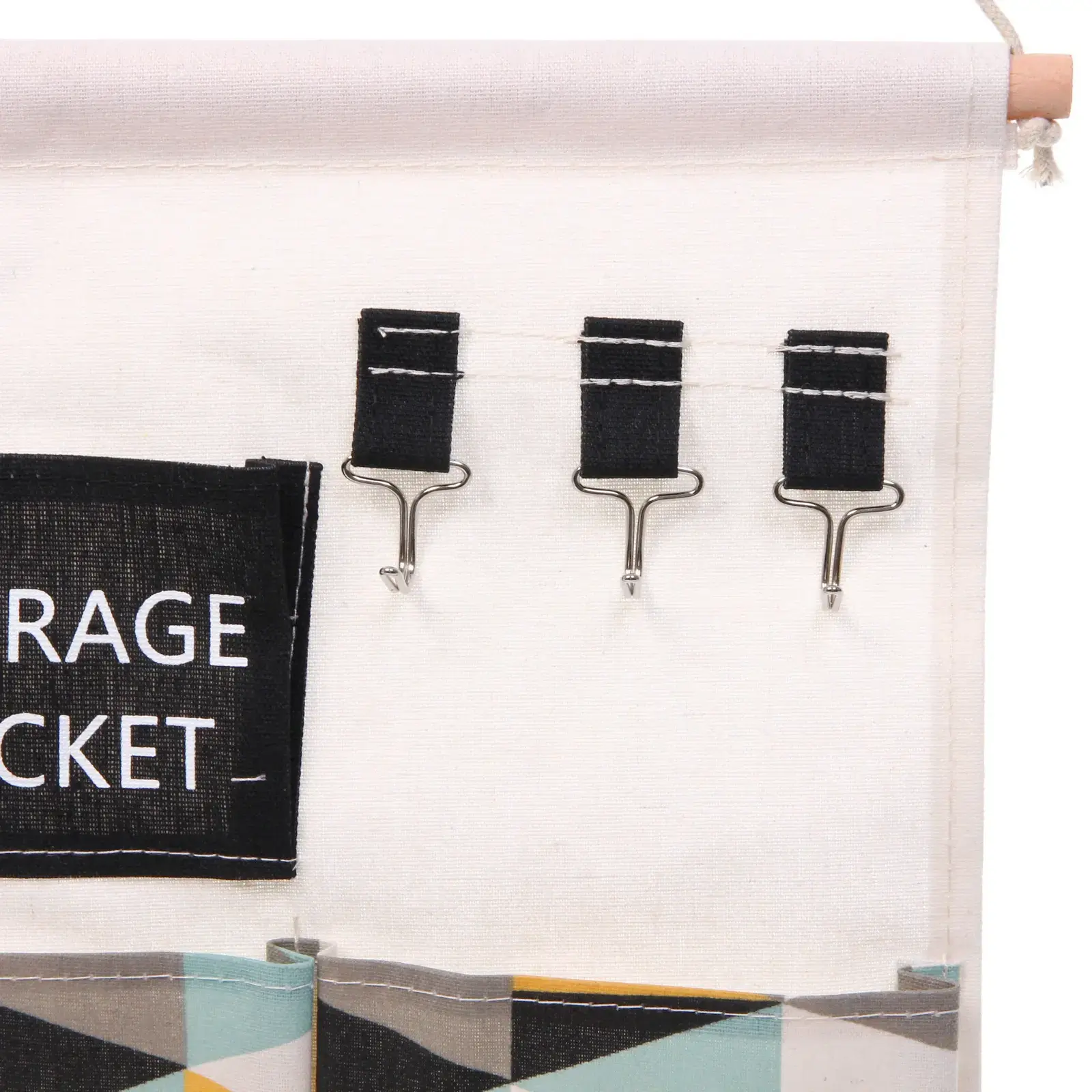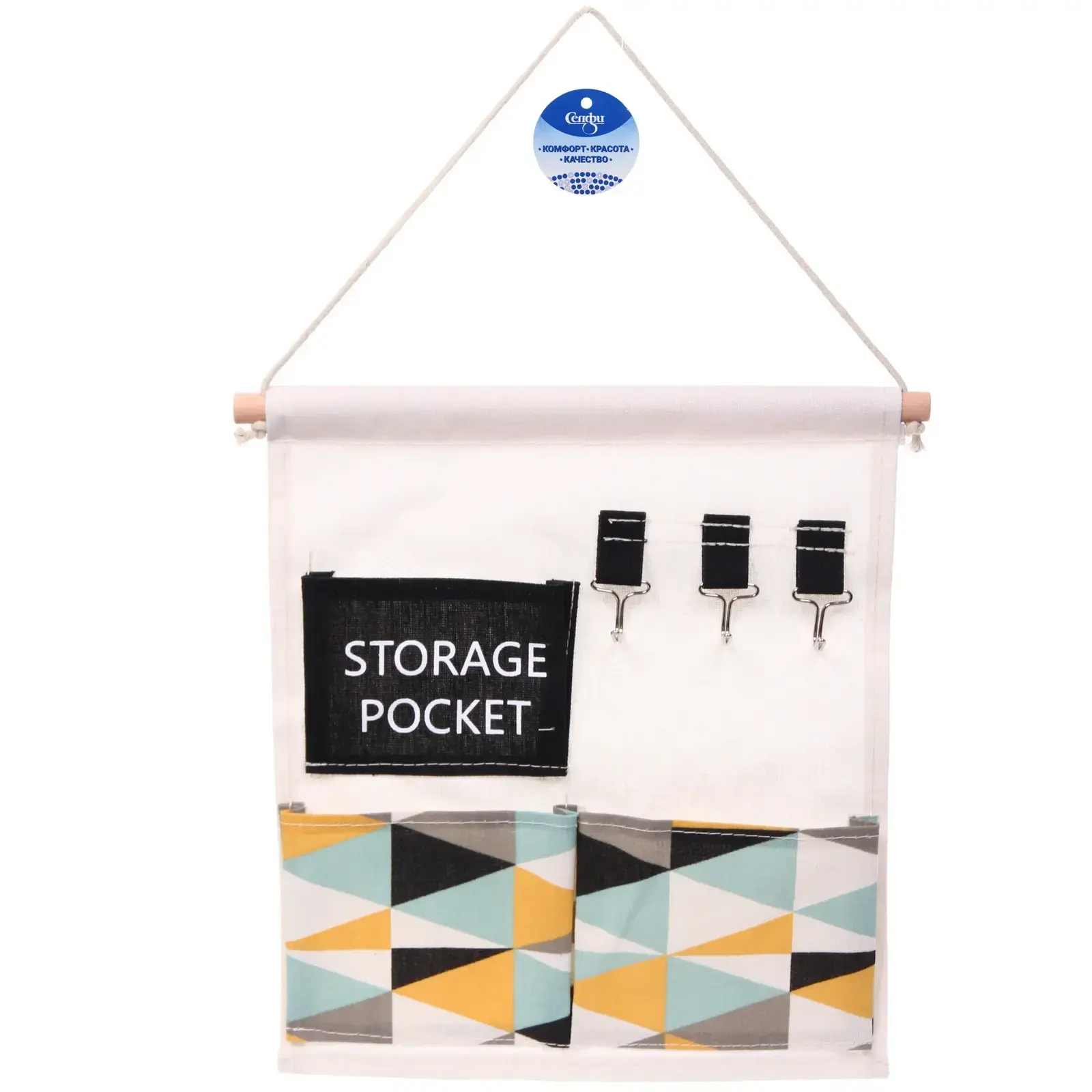 Размеры органайзера составляют 30х34 см, что делает его компактным и удобным для размещения в любом уголке вашего дома. Он выполнен из дерева и текстиля, что обеспечивает прочность и легкость в уходе. Подвешивание осуществляется с помощью металлических клипс, что делает установку быстрой и простой.