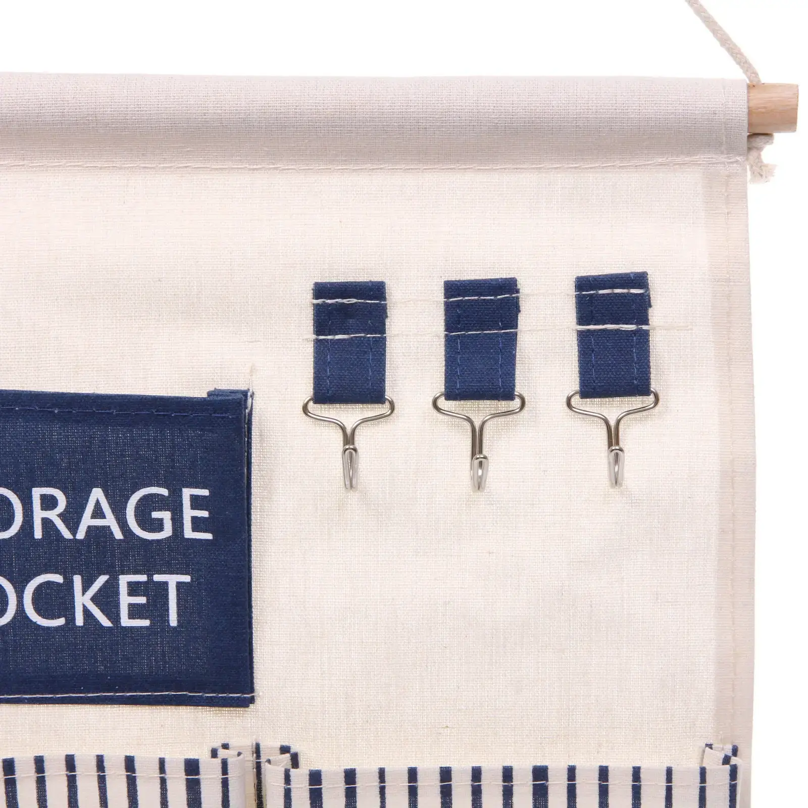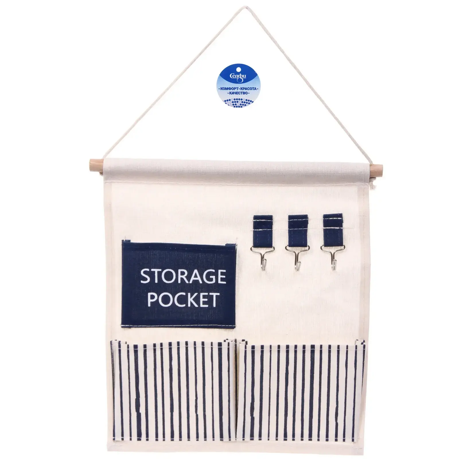 Карман имеет три отделения, что позволяет удобно распределить вещи по категориям. Он идеально подходит для использования в прихожей, детской комнате или офисе. Легко крепится на стену с помощью деревянной перекладины и веревки, что делает его установку быстрой и простой.