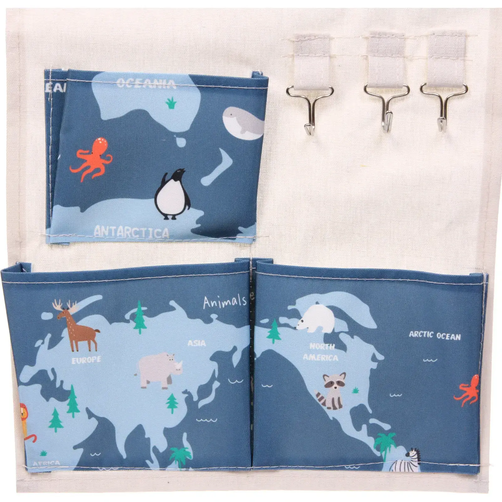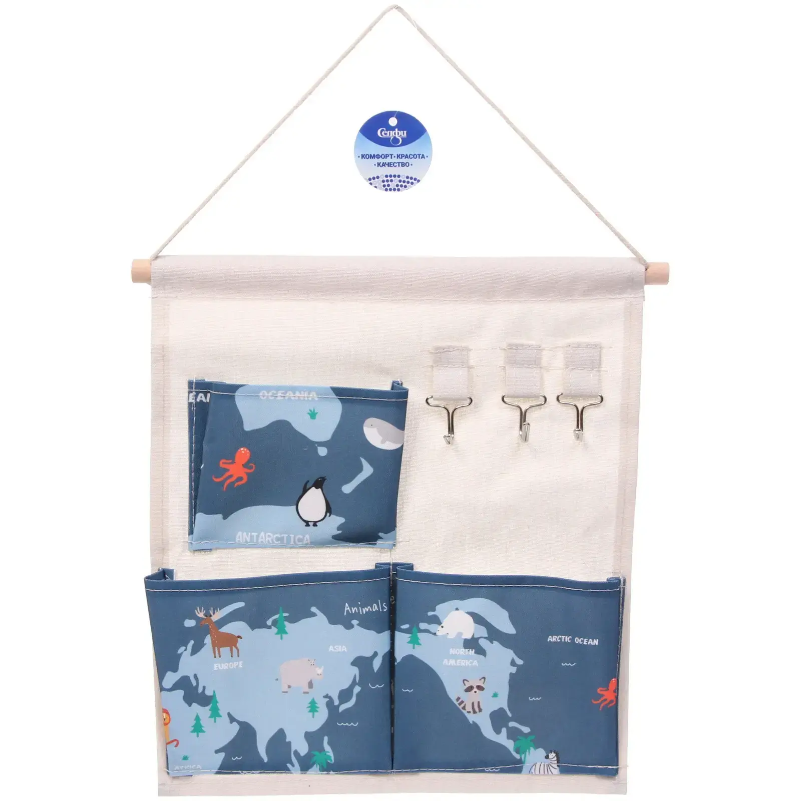 Органайзер настенный «Карта мира» с 3 карманами и крючками, текстиль/дерево, 34х30см