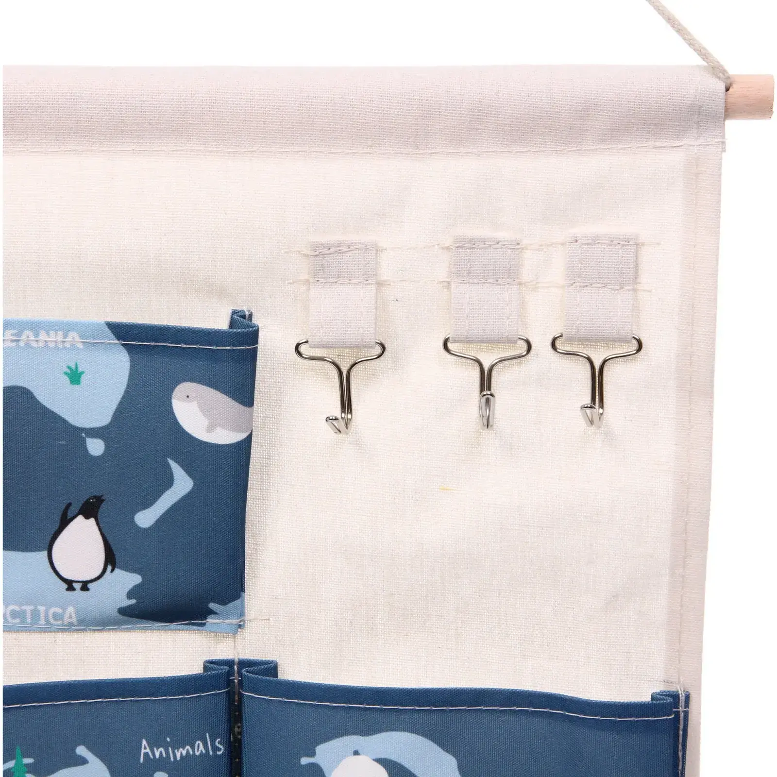 Стильный текстильный органайзер с географическим дизайном превратит хранение мелочей в элемент декора. 3 просторных кармана и 3 металлических крючка создают продуманную систему для ключей, канцелярии или косметики.