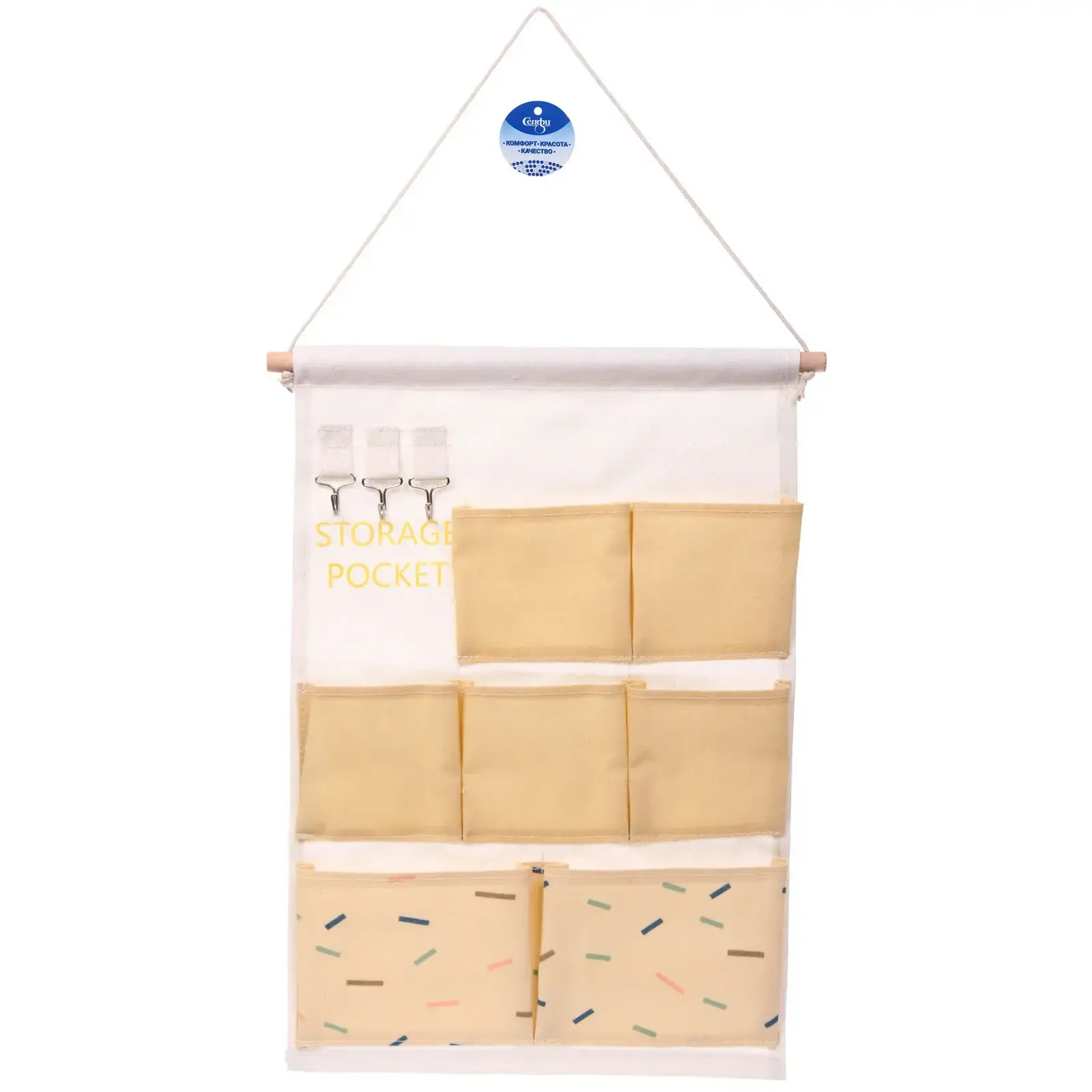 Органайзер настенный «ИДЕЯДОМА», 7 карманов, текстиль/дерево, 35х50 см, светло-желтый