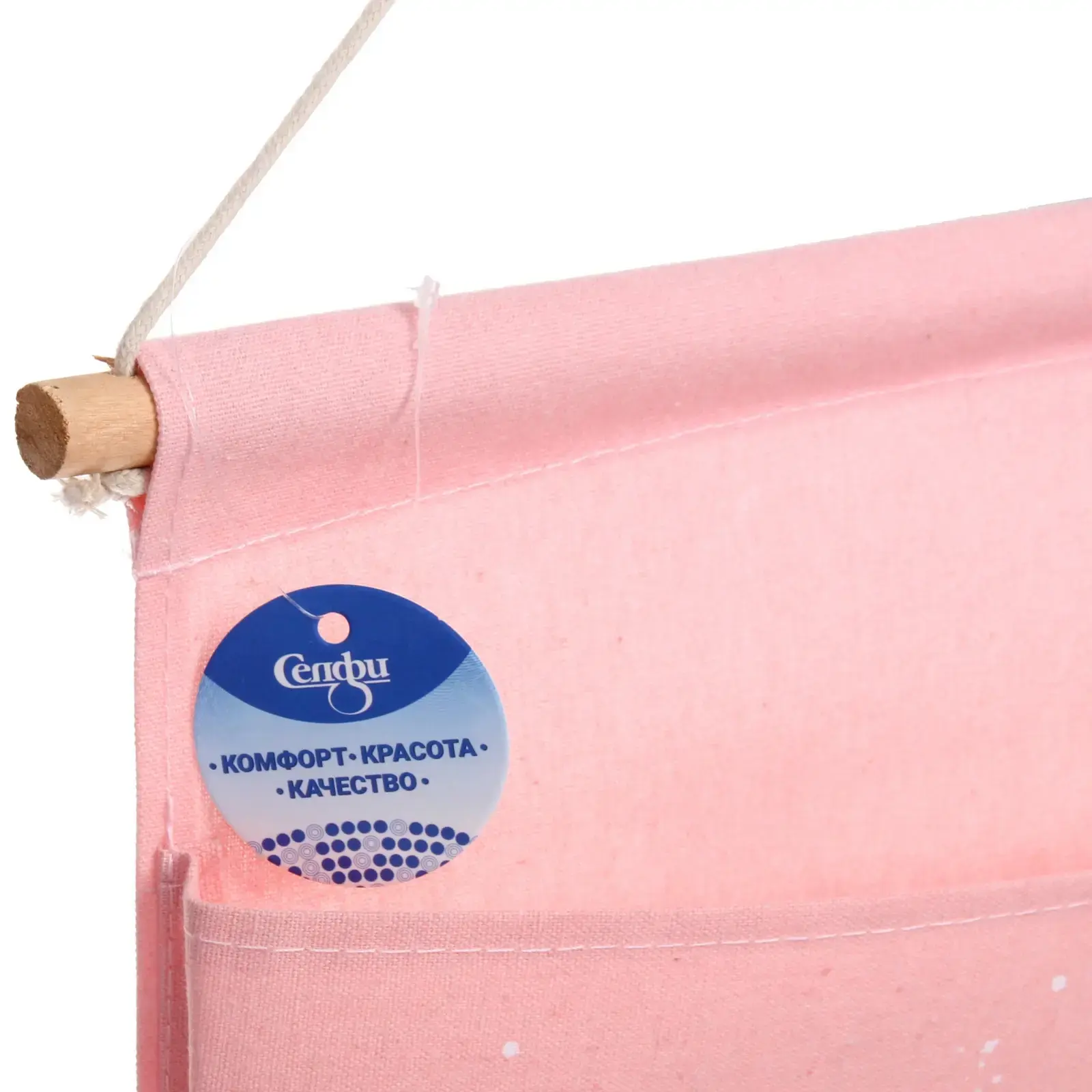 Карман подвесной, выполненный из прочного текстиля, легко крепится на стену с помощью деревянной планки и веревки. Он состоит из трех секций, что позволяет удобно распределить вещи по карманам. Этот органайзер подходит для детей и взрослых, которые ценят порядок и стиль в своем пространстве.