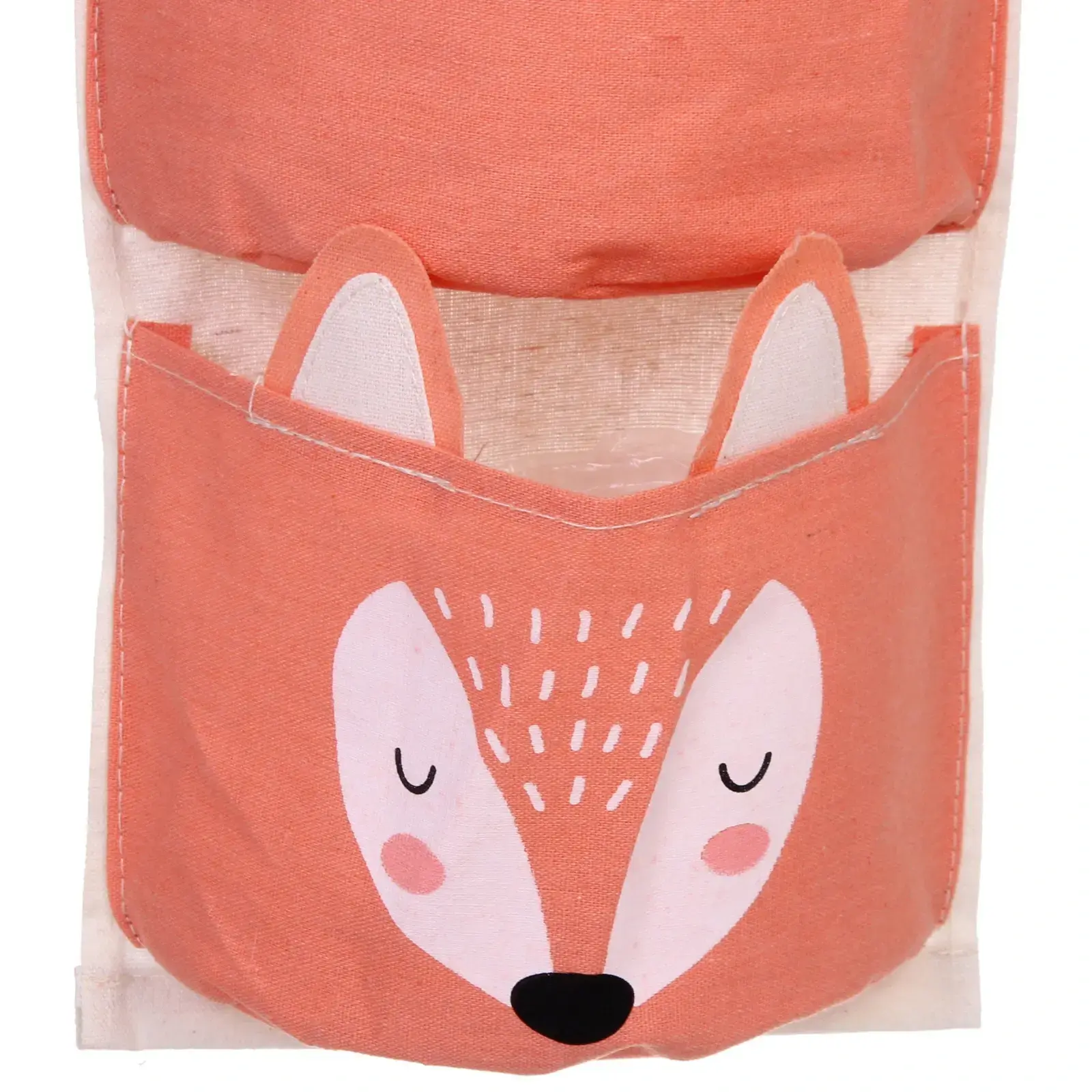 Размеры органайзера составляют 20х59 см, что делает его идеальным для размещения на стене. Основной цвет — светлый коралловый с элементами белого, а нижний карман оформлен в виде мордочки лисы. Такой органайзер станет не только практичным, но и стильным дополнением к вашему интерьеру.