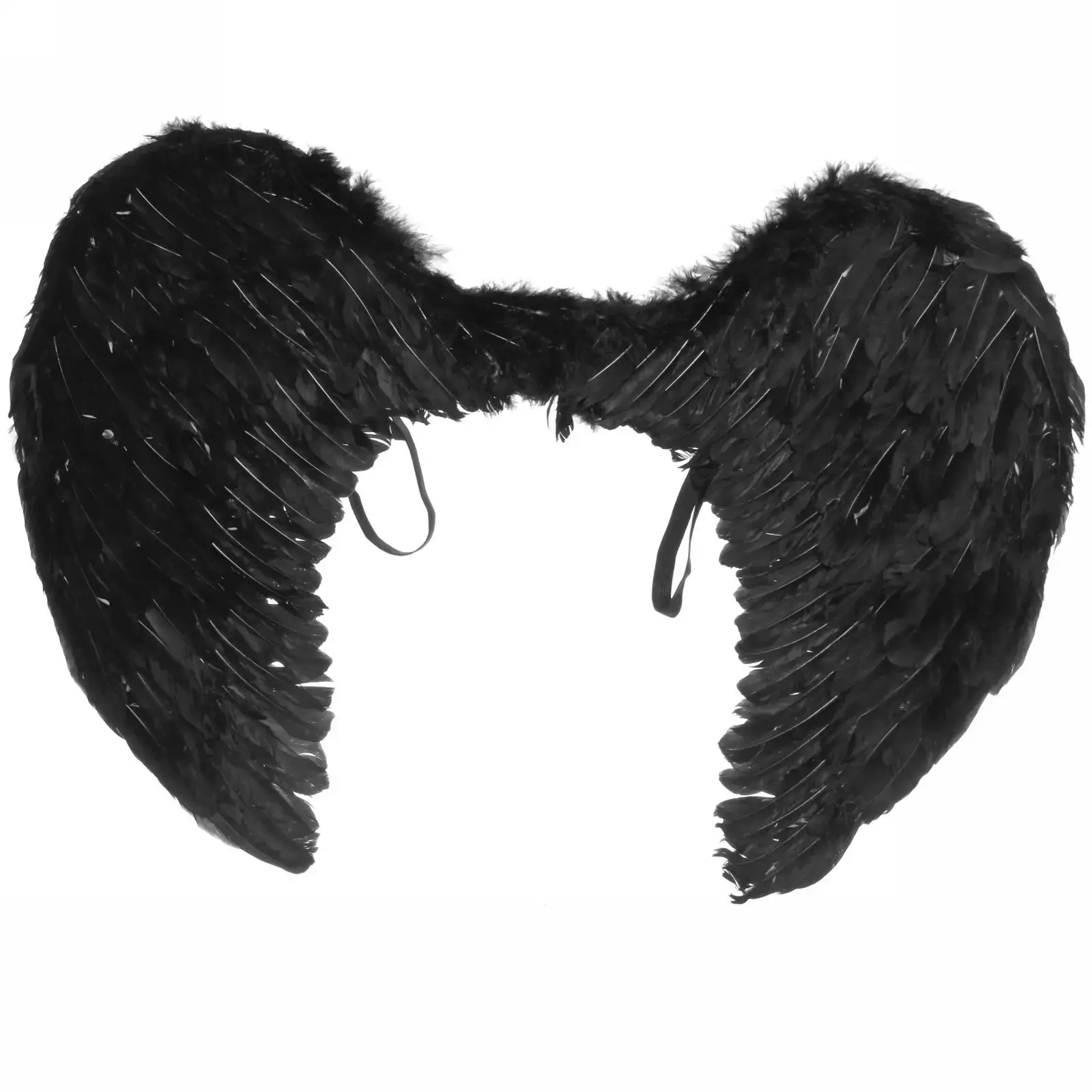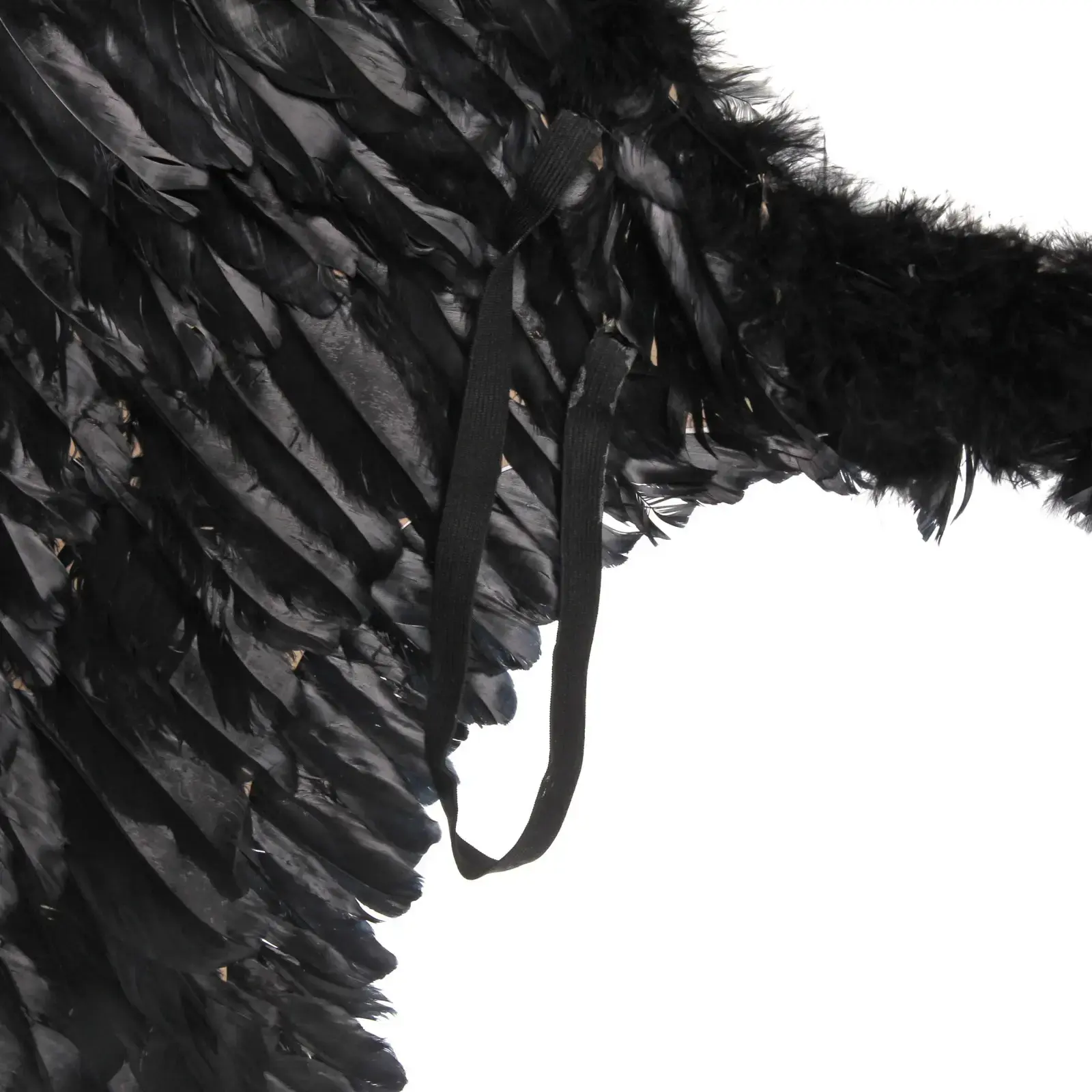 Крылья ангела «Серпантин», 80x60 см, черные, перья с блеском, крепление лентами