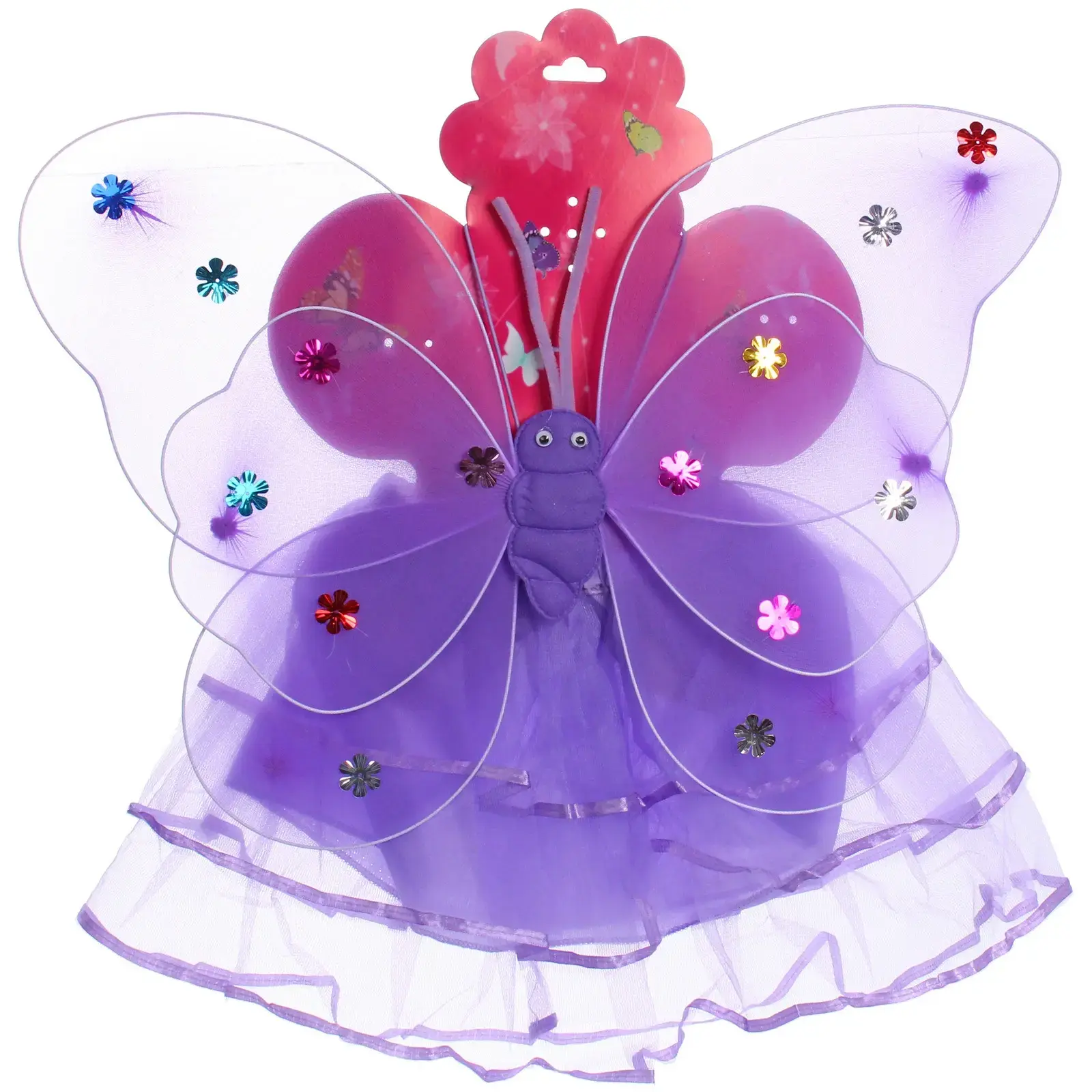 Костюм выполнен из качественных синтетических материалов, что обеспечивает долговечность и легкость в уходе. Юбка имеет эластичный пояс, что позволяет легко регулировать размер. Крылья украшены блестящими элементами, а волшебная палочка дополнена яркими лентами, что делает образ завершенным и привлекательным.