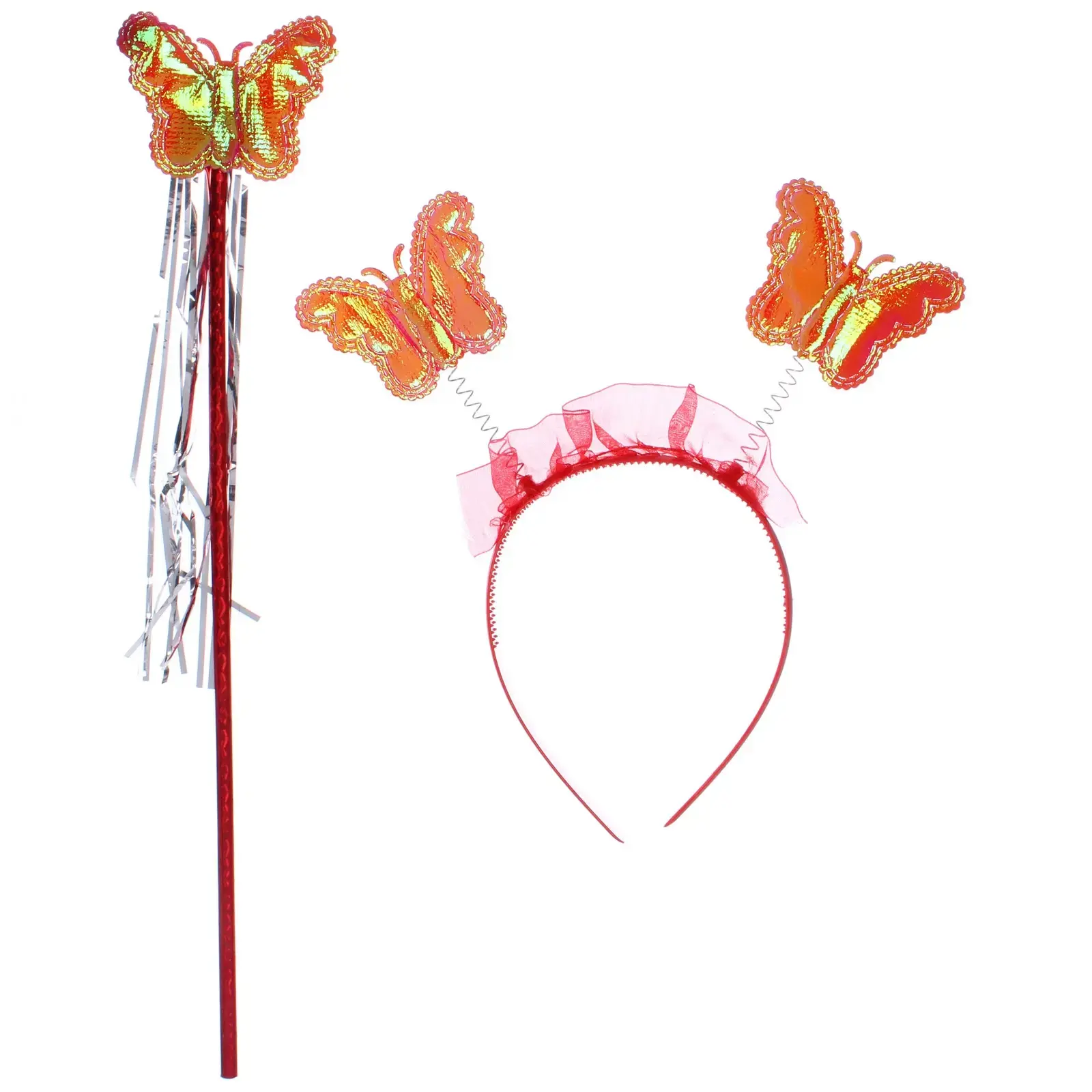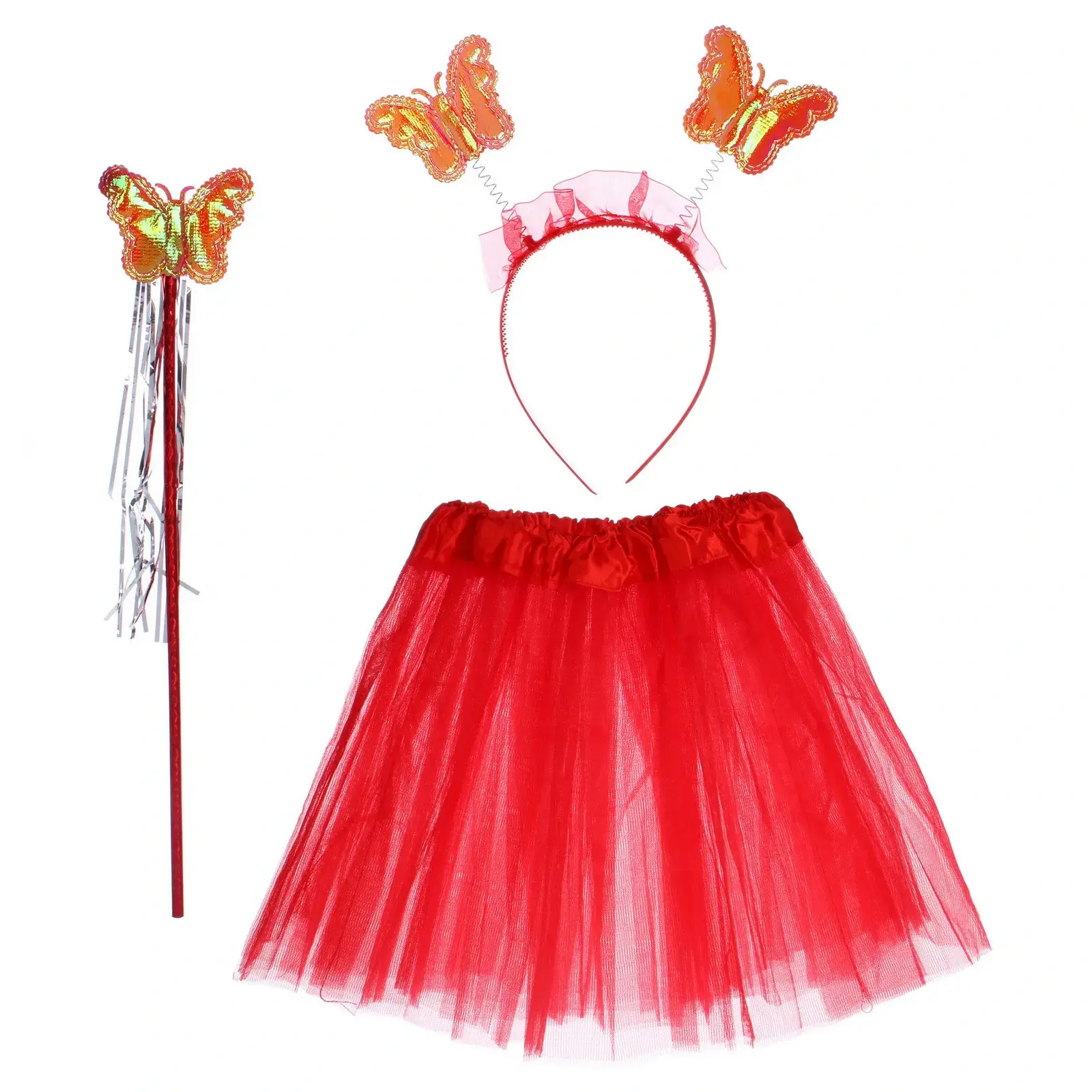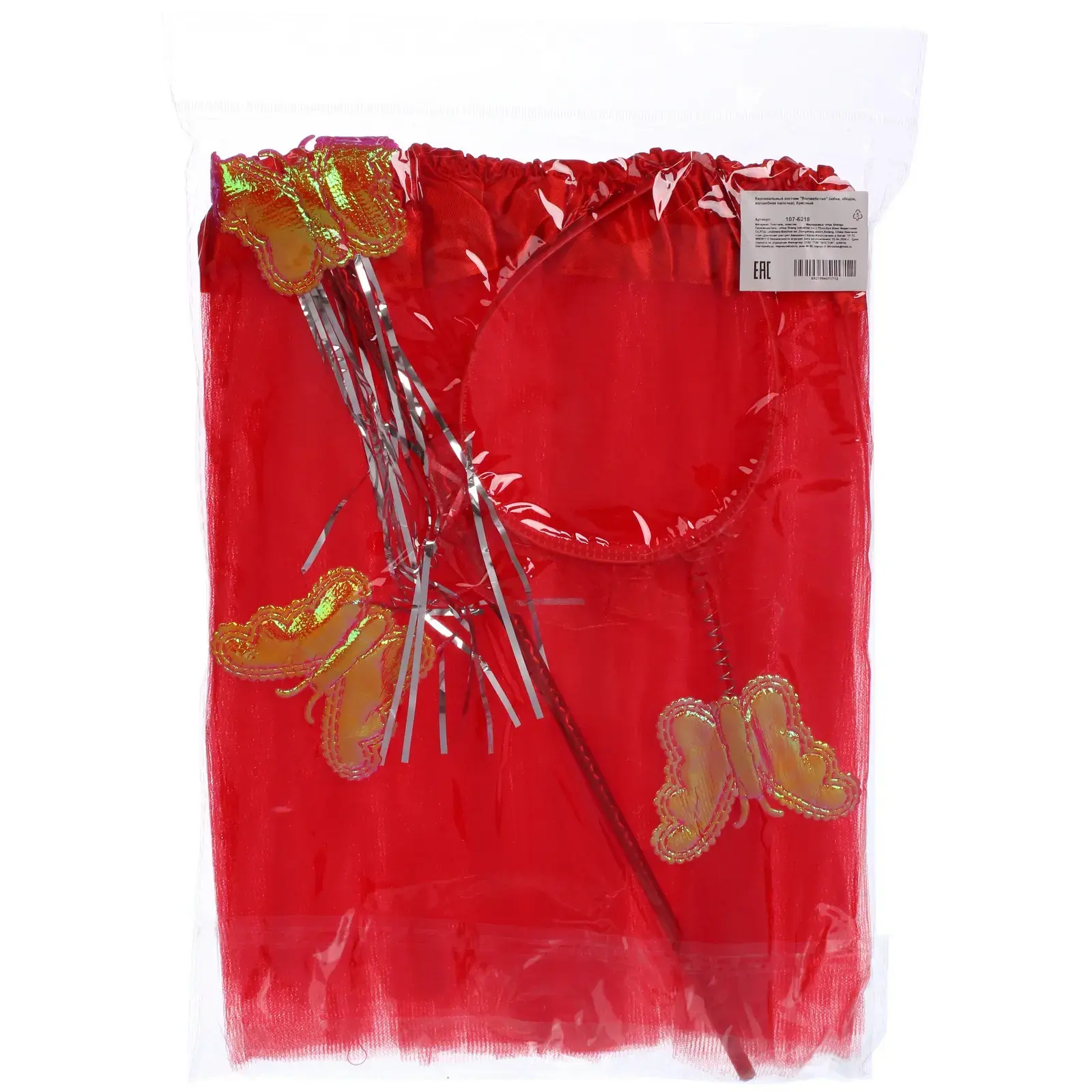 Детский карнавальный набор «Волшебство»: юбка с оборками, ободок с бабочками, волшебная палочка, красный