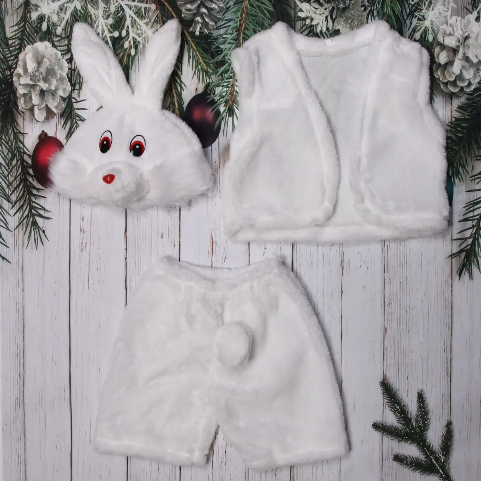 Материал костюма приятен на ощупь и не вызывает раздражения. Белый цвет универсален и подходит для различных праздничных мероприятий. Пушистая текстура создает ощущение комфорта и тепла.