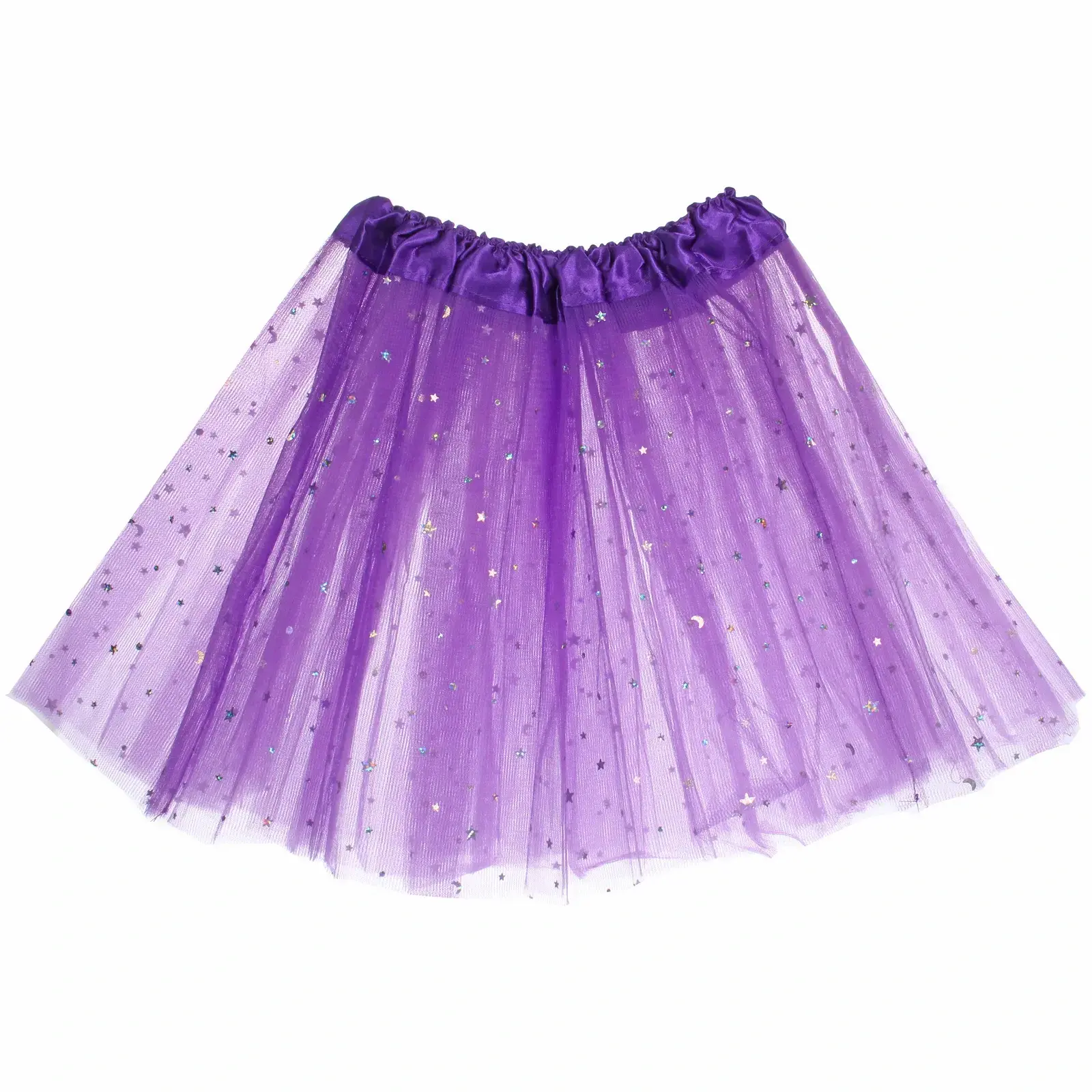 Карнавальный костюм «Звездное небо» для девочки: юбка, ободок, волшебная палочка, сиреневый, блестки
