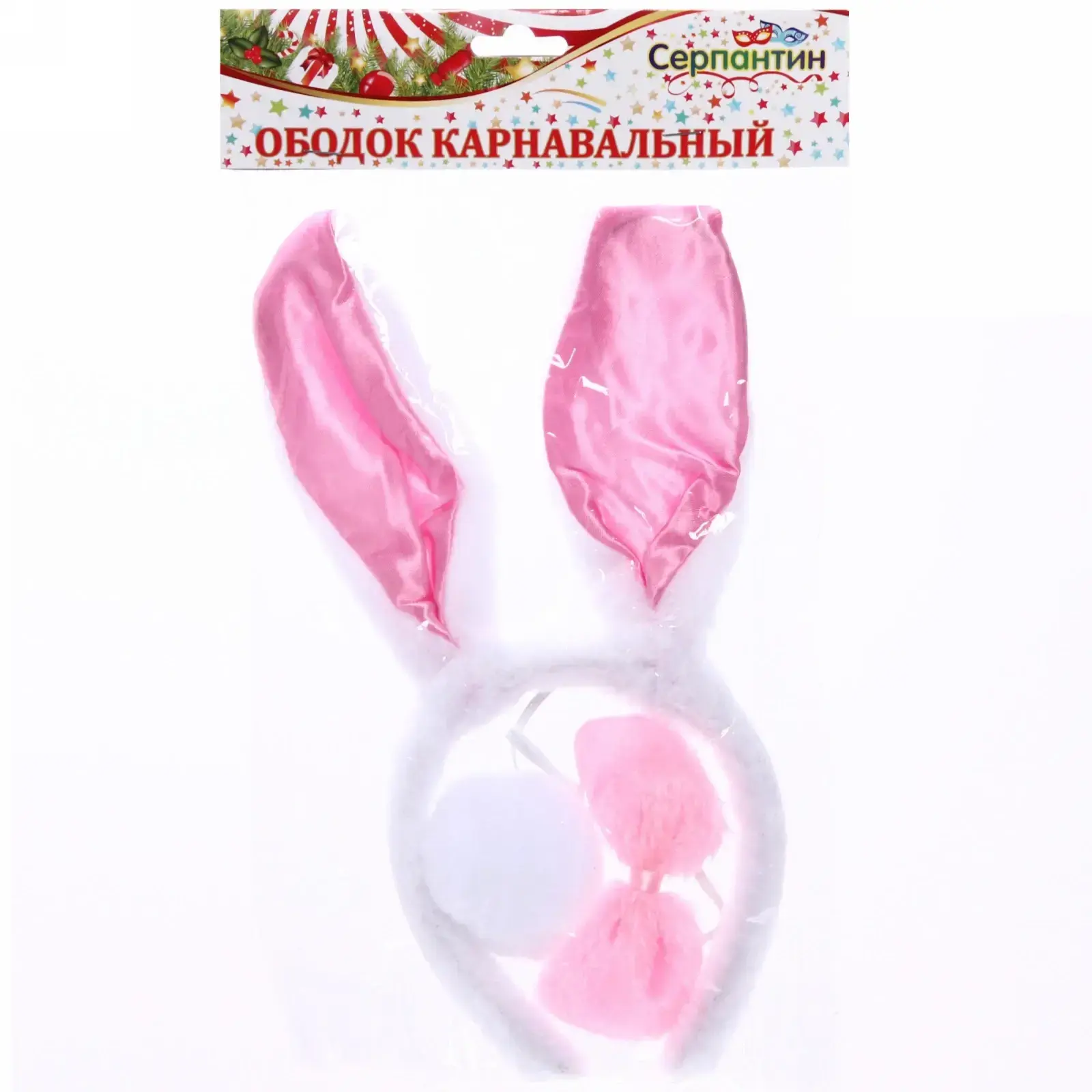 Ободок белого цвета с розовыми ушками, выполненными из сатина и искусственного меха, придаст вашему образу игривости. Бантик розового цвета с пушистой текстурой и хвостик белого цвета, круглой формы, добавят завершающий штрих к вашему костюму. Все элементы набора легкие и удобные в использовании, что делает их идеальными для длительного ношения.