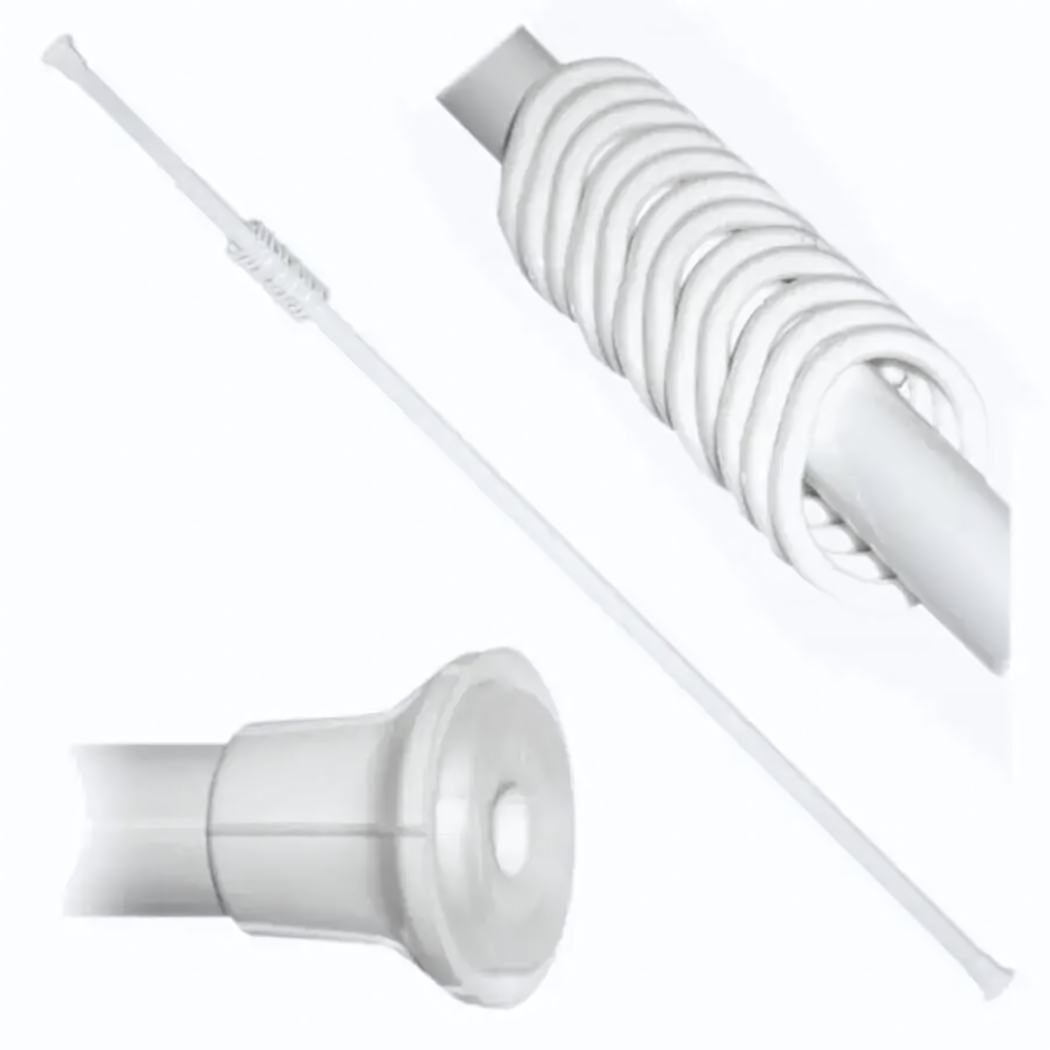 Карниз специально разработан для помещений с повышенной влажностью. Гладкая поверхность стержня защищена от коррозии, а спиральная обмотка обеспечивает дополнительную жёсткость конструкции. Подходит для любых типов штор — от лёгких тюлевых до тяжёлых банных полотен.