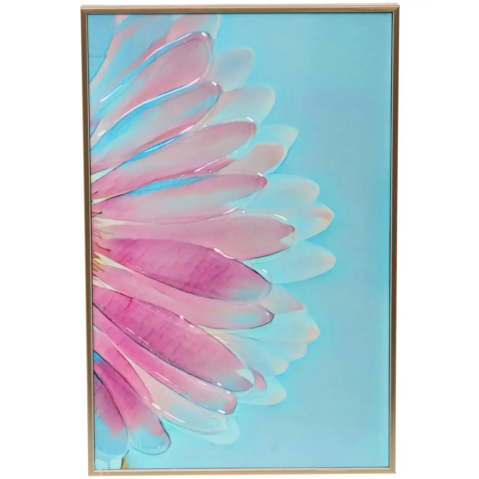 Эта изящная картина в аккуратной раме привнесёт в интерьер атмосферу спокойствия и утончённости. Макросъёмка лепестков в нежных розово-фиолетовых и голубых оттенках на ровном небесно-голубом фоне создаёт гармоничное настроение и визуально расширяет пространство. Такой декор не только украсит комнату, но и поможет подчеркнуть ваш индивидуальный стиль.