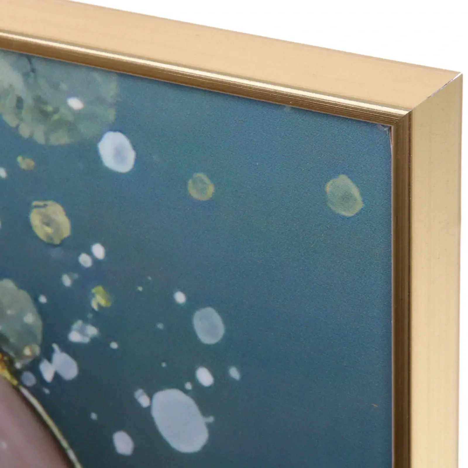 Размеры: 19х29 см. Картина помешена в тонкую рамку золотистого цвета, что подчеркивает её стильность. Материалы обеспечивают долгий срок службы и устойчивость к выгоранию. Удобна для самостоятельной установки и легко комбинируется с другими элементами декора.