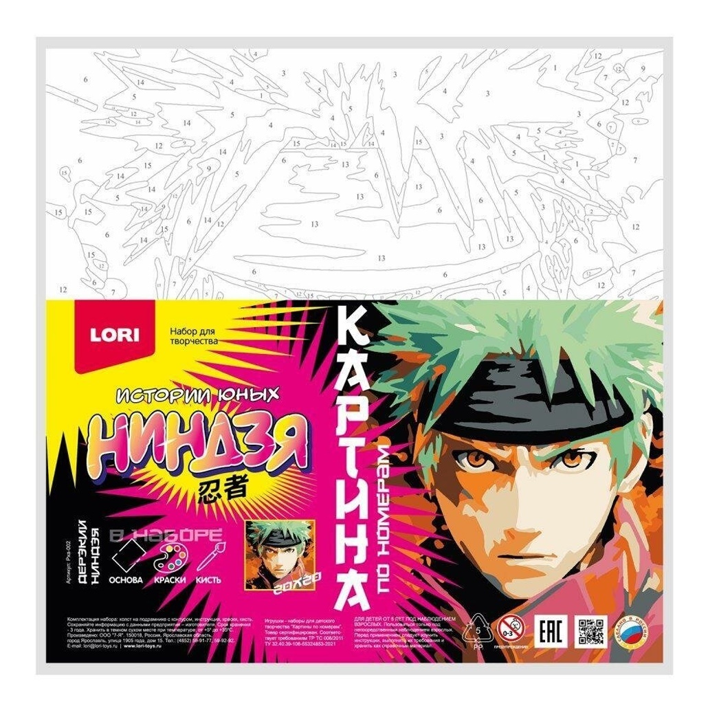 Динамичный сюжет с ниндзей в яркой цветовой гамме развивает художественный вкус и концентрацию. Качественные материалы обеспечивают ровное покрытие без подтеков, а компактный размер 20х20 см позволяет закончить работу за 1-2 вечера.