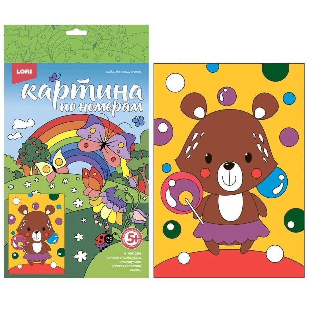 Картина по номерам 20x28,5 см с холстом, красками и кистью «Мишкина радость» для детей от 5 лет