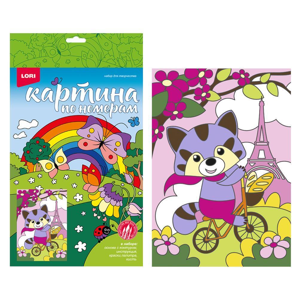 Набор для рисования по номерам "Енотик в Париже" 20x30 см, акриловые краски 8 цветов, кисть, для детей от 3 лет