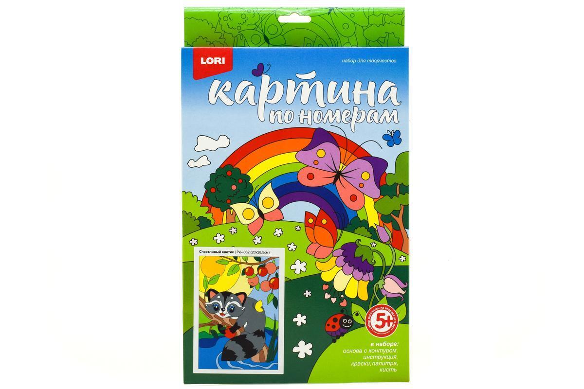 Картина по номерам "Счастливый енотик" 20x30см, набор для творчества с красками, 5+