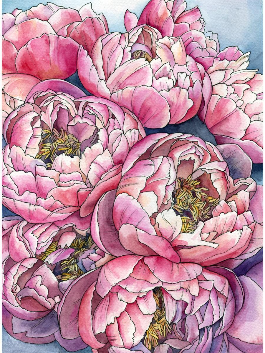 Картина по номерам "Букет пионов" 22х30см, 16 цветов, холст и краски в комплекте