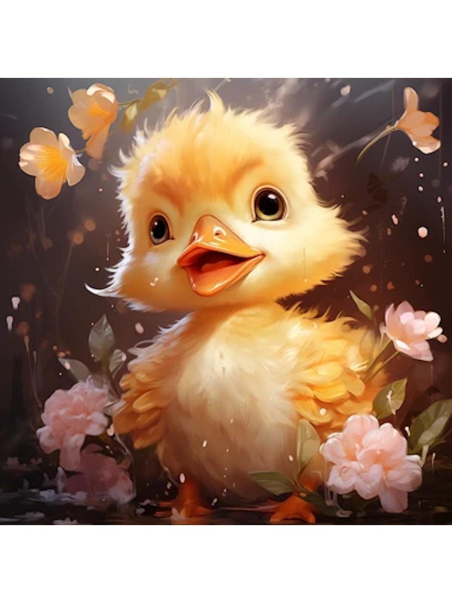 Картина по номерам "Малыши-животные. Утёнок в цветах", 30х30см, хлопок, 20 цветов