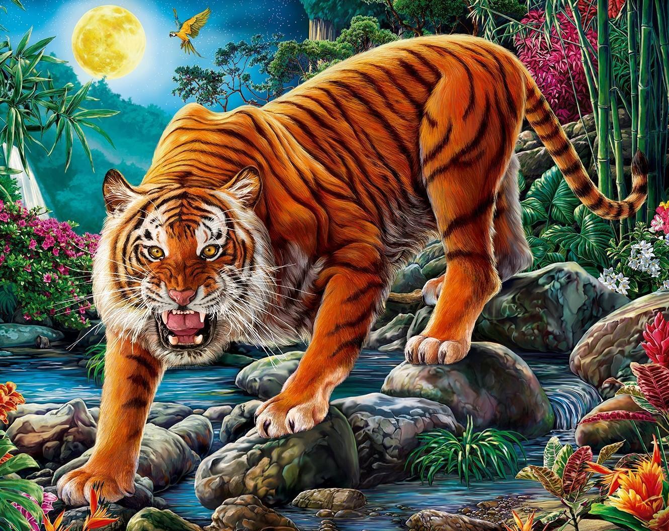 Создай свой шедевр: Картина по номерам 'Ночной тигр при полной луне'