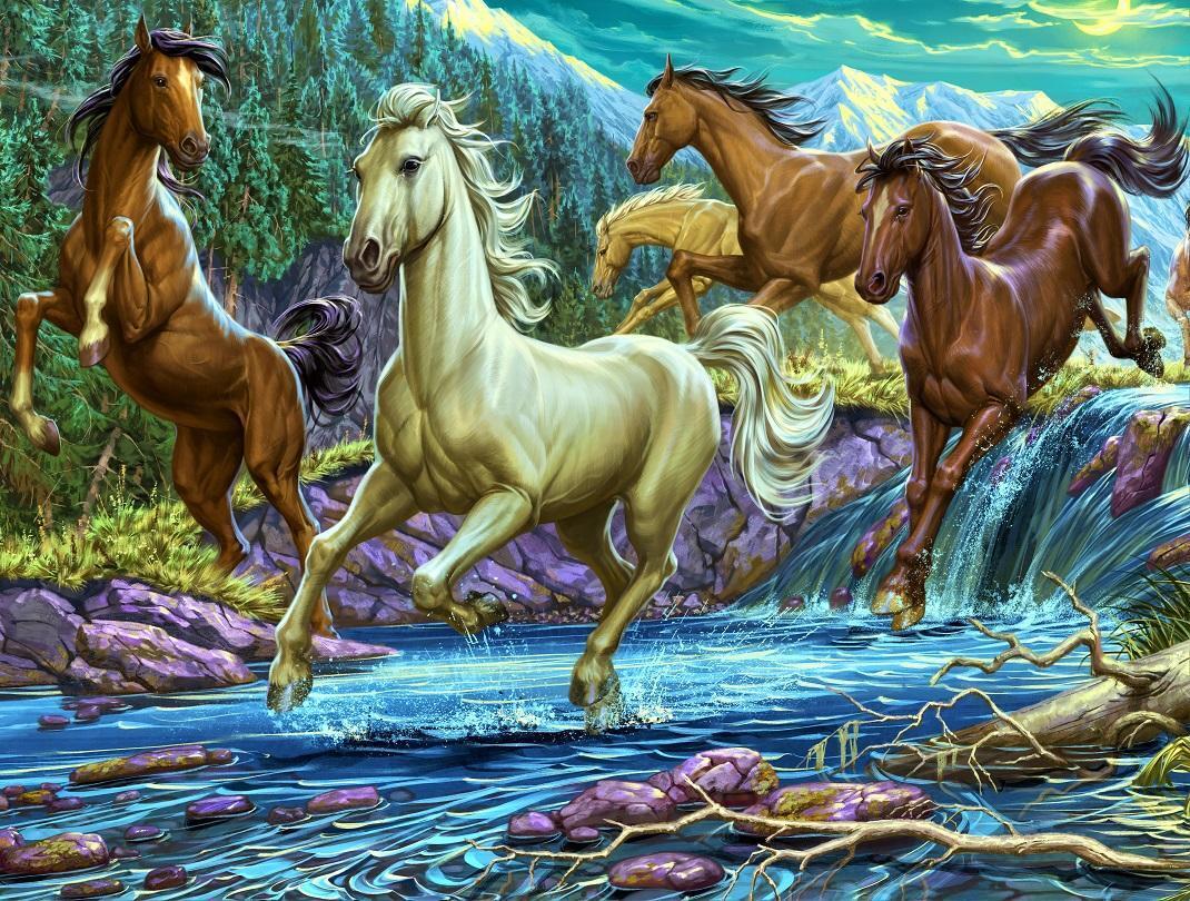 Картина по номерам 'Стадо ночных лошадей' 30х40см, 20 цветов, холст на подрамнике