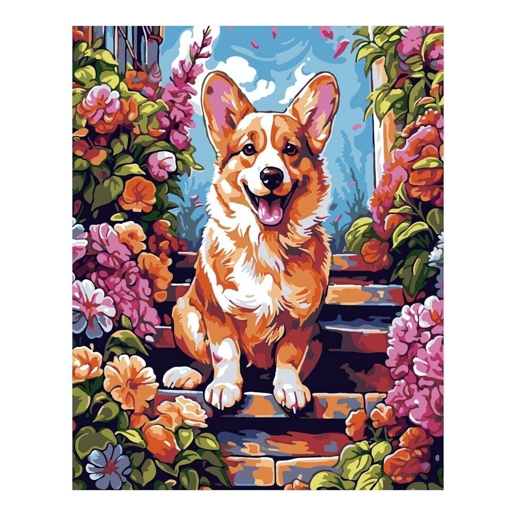 Картина по номерам "Корги в цветах", 40х50см, холст на подрамнике, акриловые краски