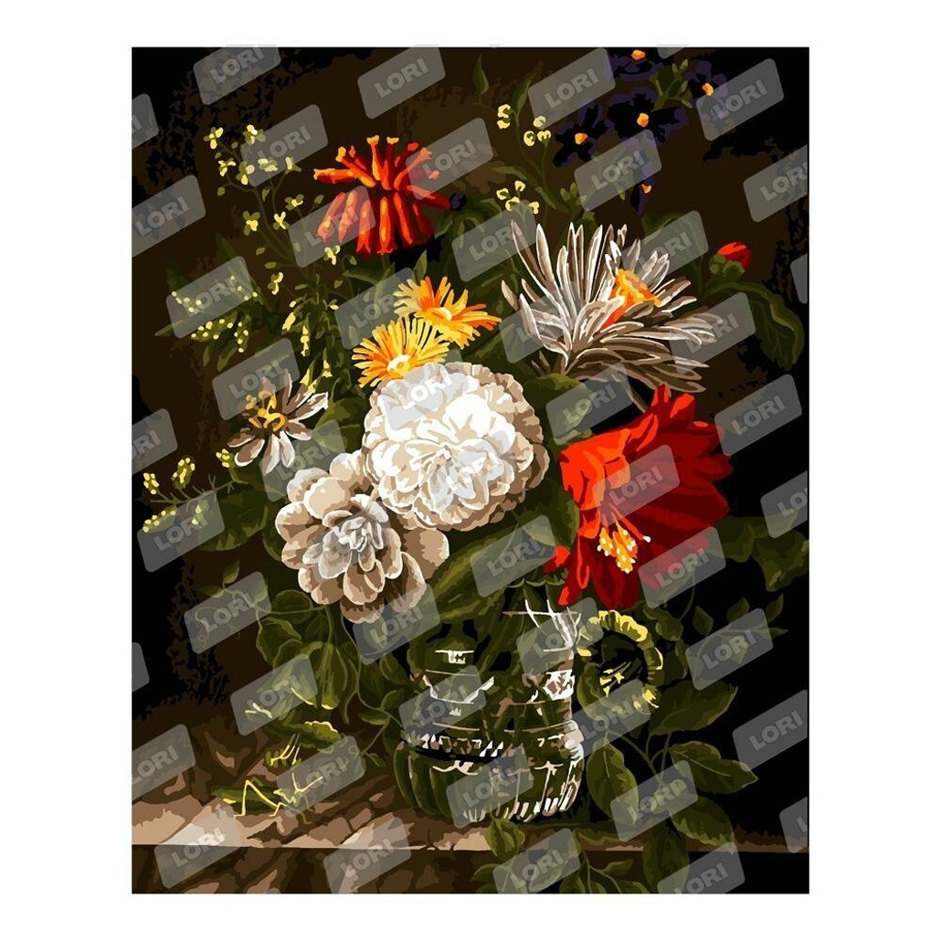 Картина по номерам 40х50см «Цветы в граненой хрустальной вазе»: холст, акриловые краски, кисть