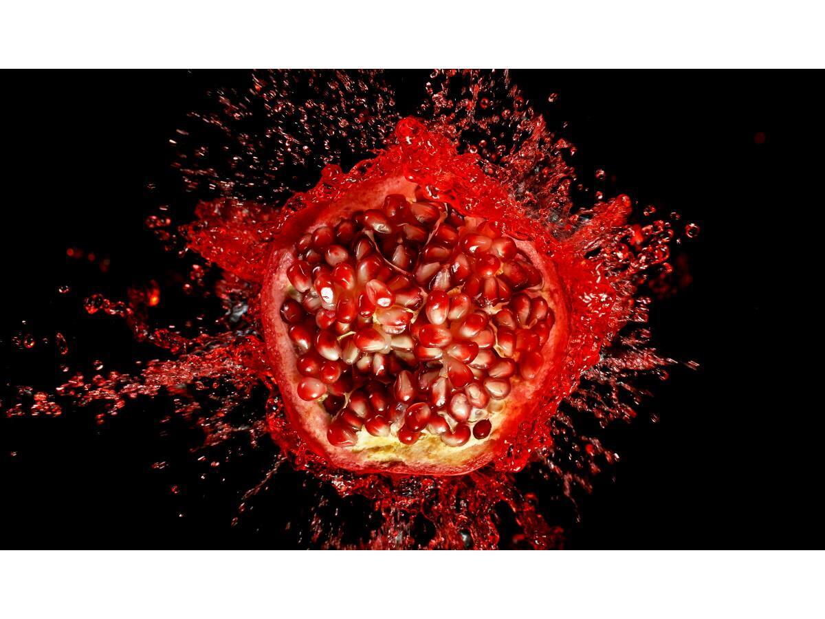 Черный фон холста усиливает контрастность изображения, создавая эффект глубины. Специально подобранные оттенки красного и прозрачно-белого точно передают сочность граната и динамику «взрывающихся» семян. Готовую картину можно сразу повесить на стену — крепежная система уже входит в комплект.