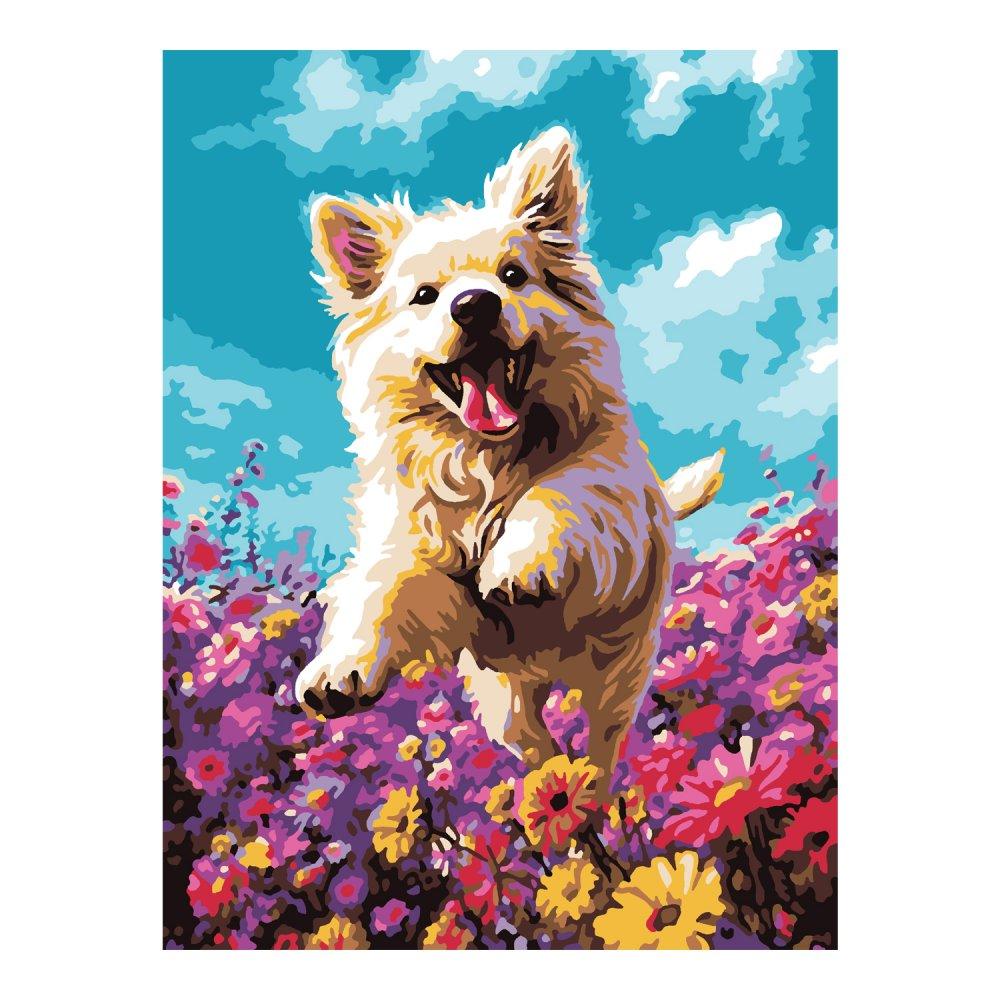 Почувствуйте себя настоящим художником и создайте жизнерадостную картину с изображением игривого щенка в цветочном поле. Этот набор для творчества — идеальный способ расслабиться после напряжённого дня, погрузиться в мир красок и получить потрясающий результат, даже если вы никогда не держали кисть в руках.