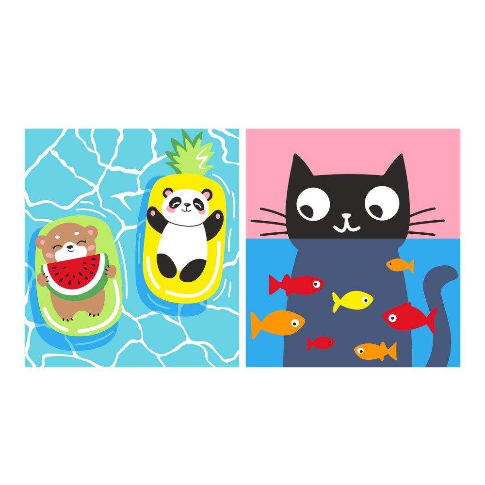Картина по номерам на картоне детская 15*13,5см. 2шт. "Водные процедуры" (Lori)