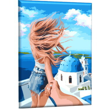 Размер готовой работы: 40х50 см. Материал основы: холст на деревянном подрамнике. Сюжет выполнен в популярной стилистике цифровой живописи с яркими узнаваемыми элементами средиземноморского пейзажа.