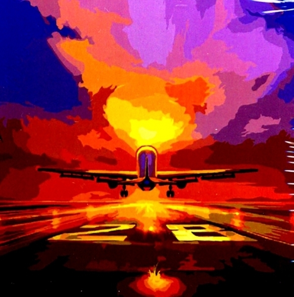 Набор включает все необходимые материалы для рисования: холст с нанесённым контуром, акриловые краски и кисти. Просто следуйте номерам на холсте, и шаг за шагом вы создадите яркую картину, изображающую самолёт, взлетающий на фоне заката. Это занятие подходит как для взрослых, так и для детей, что делает его отличным вариантом для семейного досуга.