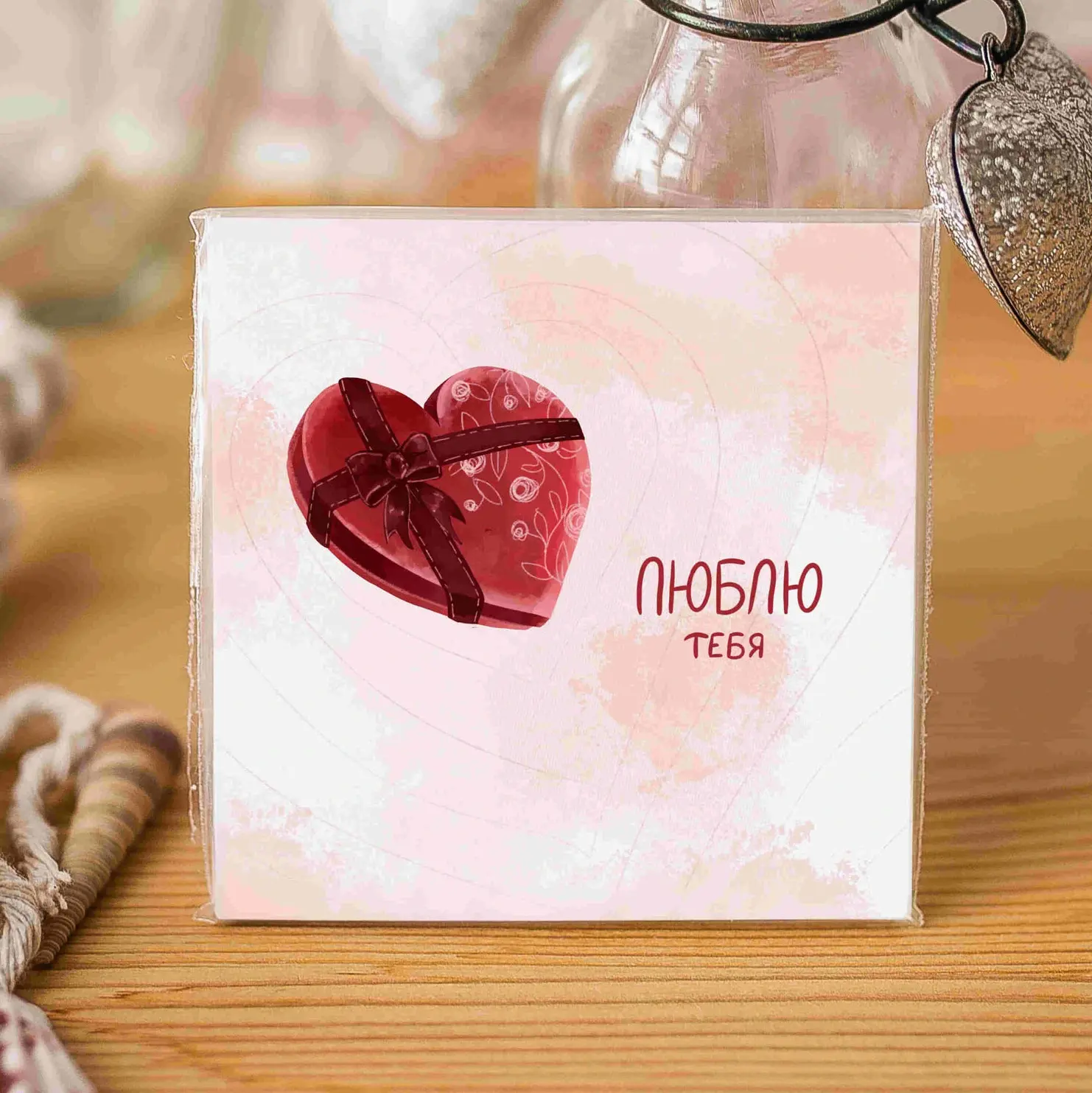 Хотя размеры упаковки не указаны, ее форма и цвет делают карточку заметной и запоминающейся. Упаковка выполнена из качественных материалов, что гарантирует долговечность и сохранность содержимого. Подарите своим близким радость и тепло с карточкой 'Люблю тебя' — это отличный способ выразить свои чувства!