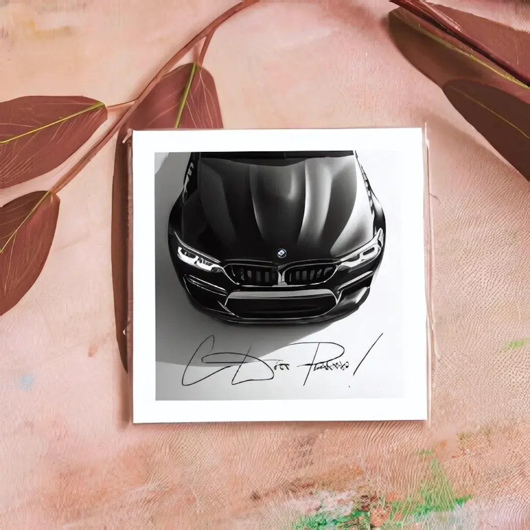 Эксклюзивная открытка с изображением легендарного BMW станет идеальным подарком для ценителей качественных автомобилей и элегантного дизайна.