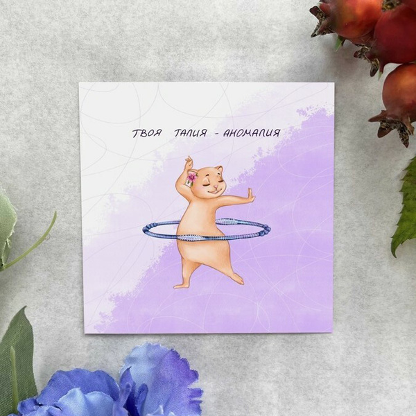 Подарите своим близким радость и улыбку с помощью карточки «Твоя талия-аномалия». Эта яркая и оригинальная карточка станет отличным дополнением к любому подарку, создавая атмосферу веселья и праздника. С милым cartoon-персонажем, танцующим с обручем на талии, она привлечет внимание и вызовет положительные эмоции у получателя.