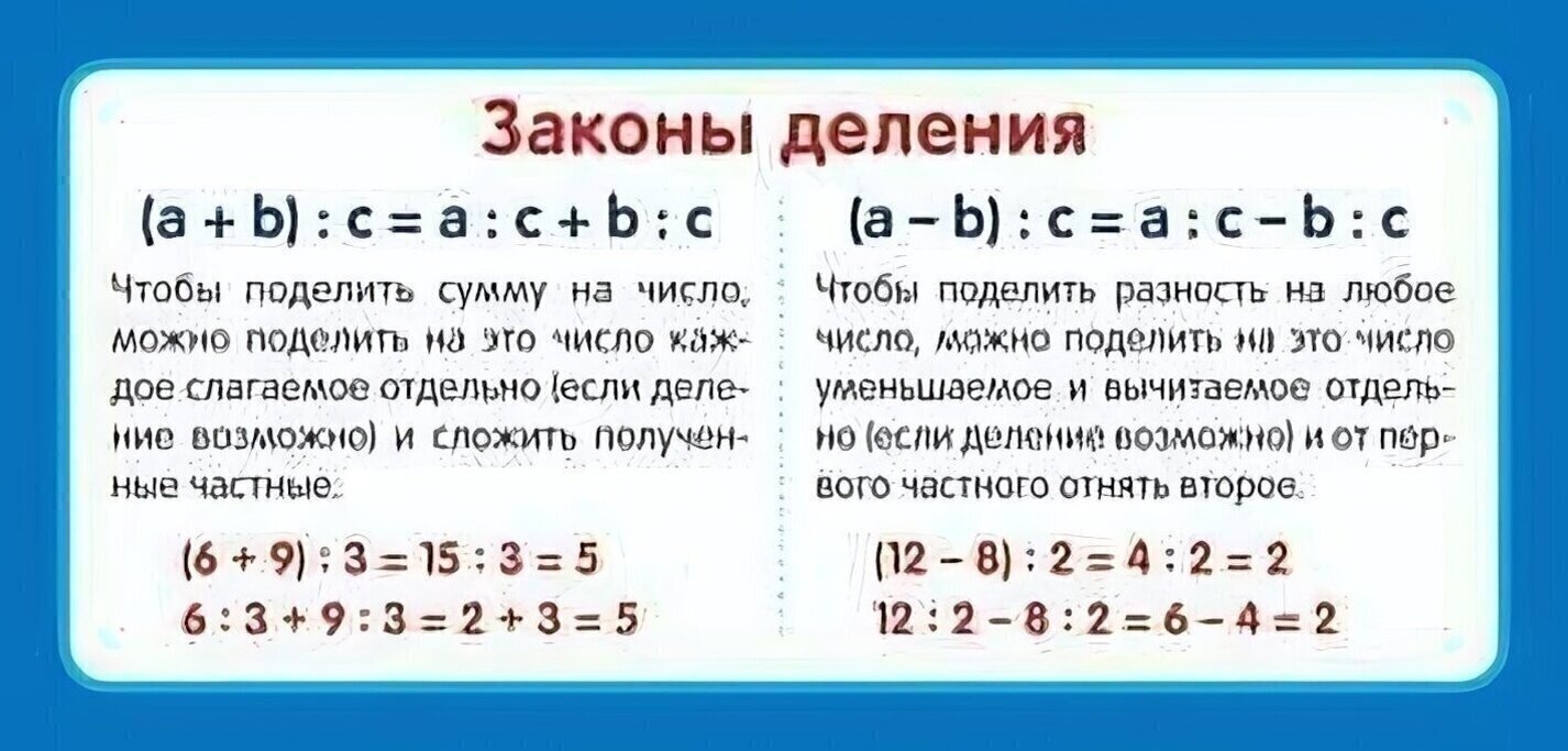Эта карточка станет незаменимым помощником в обучении математике. Яркий фон и четкое оформление делают изучение законов деления увлекательным и простым. С помощью данной карточки ваш ребенок сможет быстро освоить основные правила деления, что значительно упростит процесс обучения и повысит уверенность в своих силах.