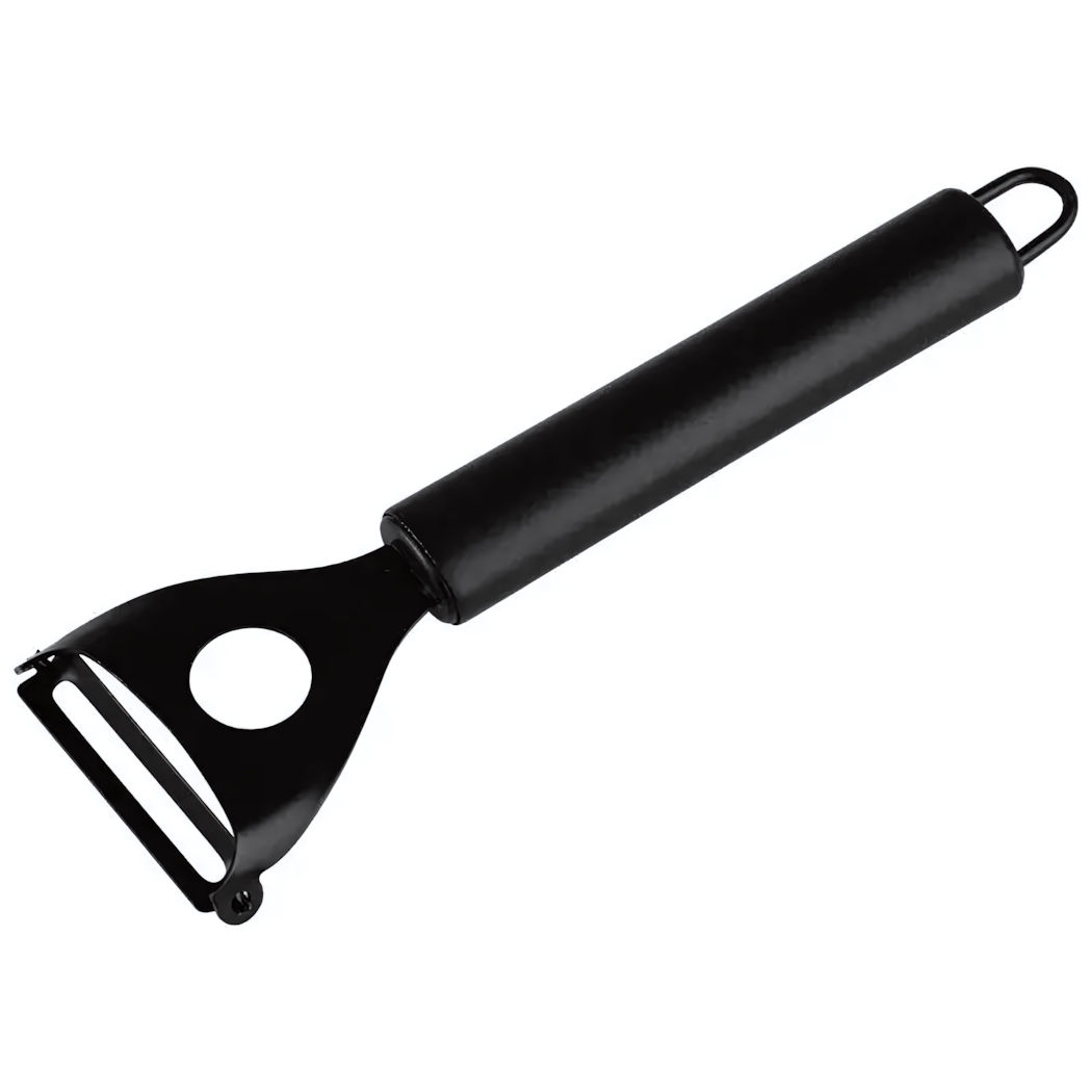 Благодаря компактному размеру и продуманной форме, картофелечистка легко справляется не только с картофелем, но и с другими овощами и фруктами. Утолщенное лезвие сохраняет остроту даже после длительного использования, а черный дизайн гармонично впишется в любую кухонную утварь.