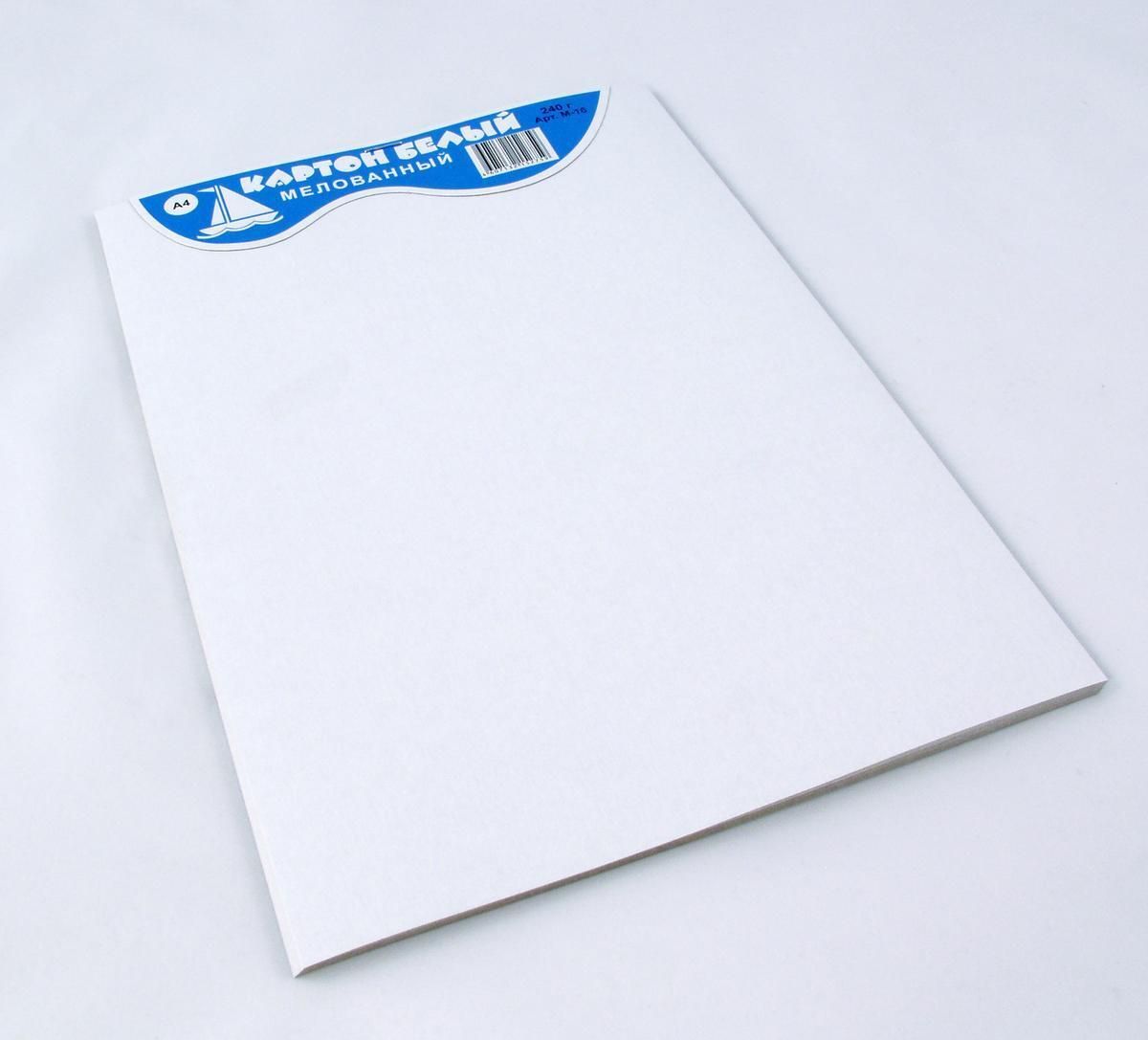 Картон белый А4, 240г/м², мелованный, 15 листов, для поделок и аппликаций