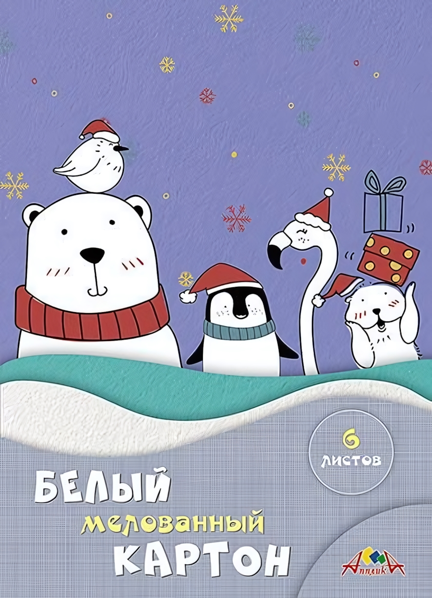 Картон белый А4, 6 листов "Белые друзья" Апплика – для творчества и аппликаций