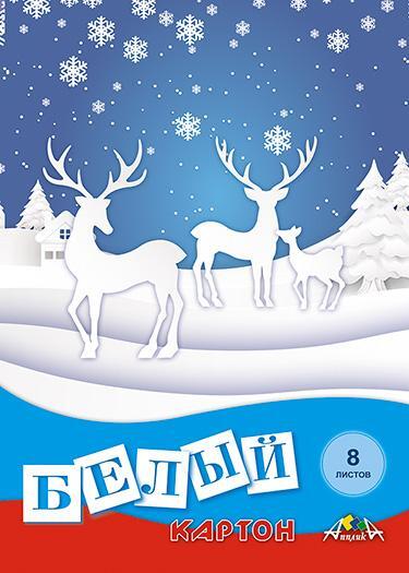Картон белый А4, 8 листов, для детского творчества, 'Белые олени'