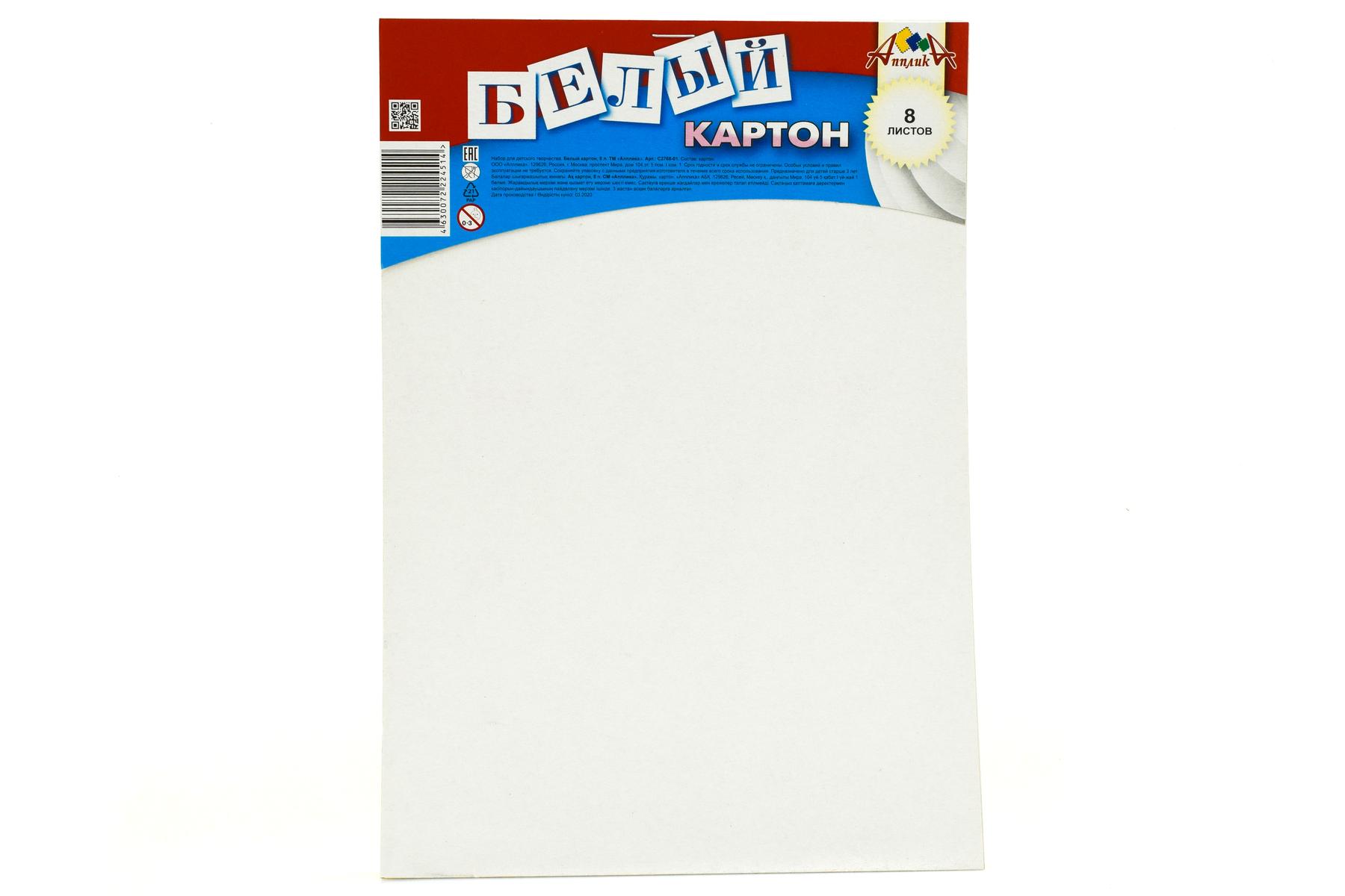 Картон белый А4, 200 гр/м2, 8 листов, для творчества и поделок
