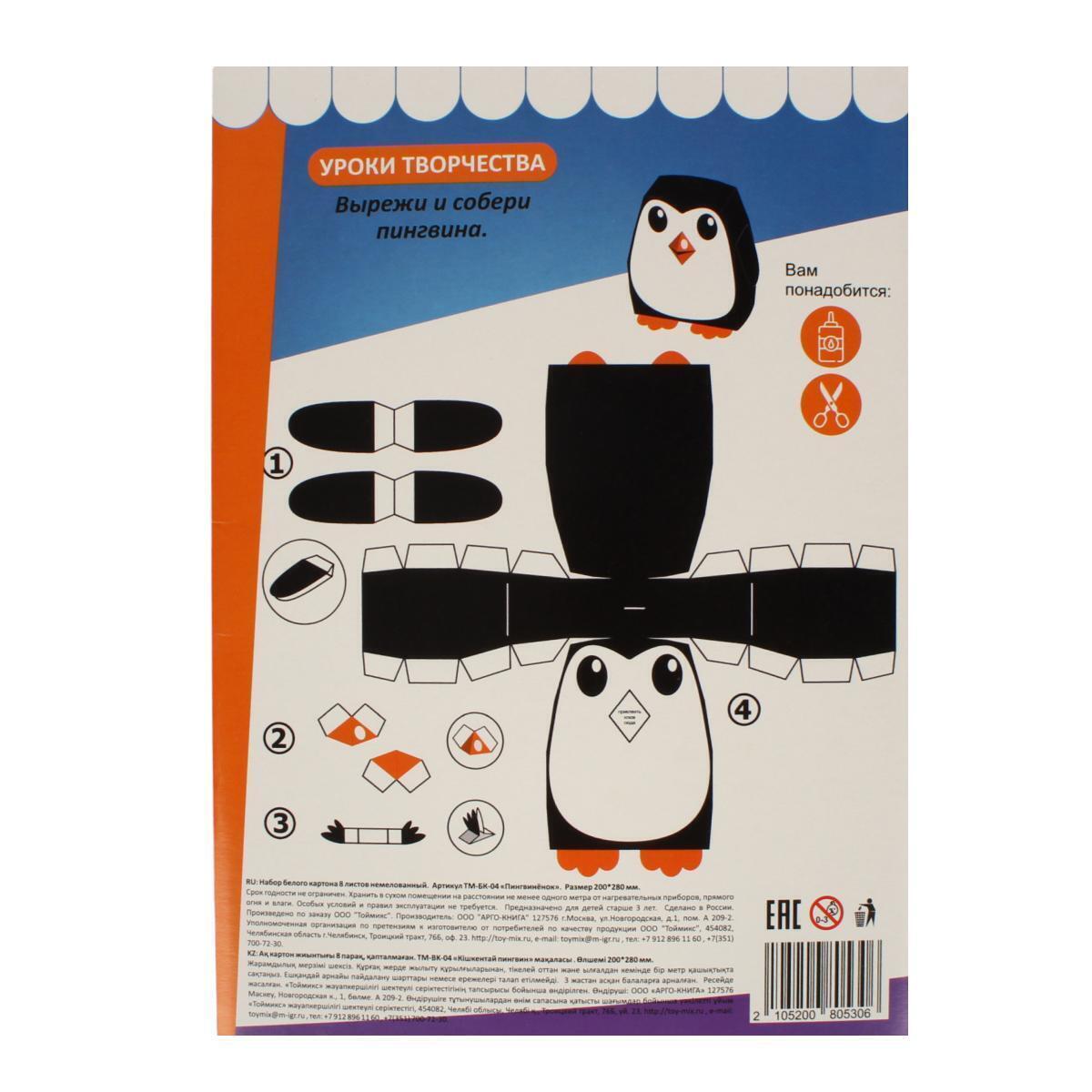 Создайте удивительные поделки с помощью белого картона 'Пингвинёнок'. Этот набор из 8 листов немелованного картона формата A4 станет отличным помощником для детей и взрослых, которые любят творить и создавать. Яркий дизайн упаковки с мультяшным пингвином привлечет внимание и вдохновит на новые идеи.