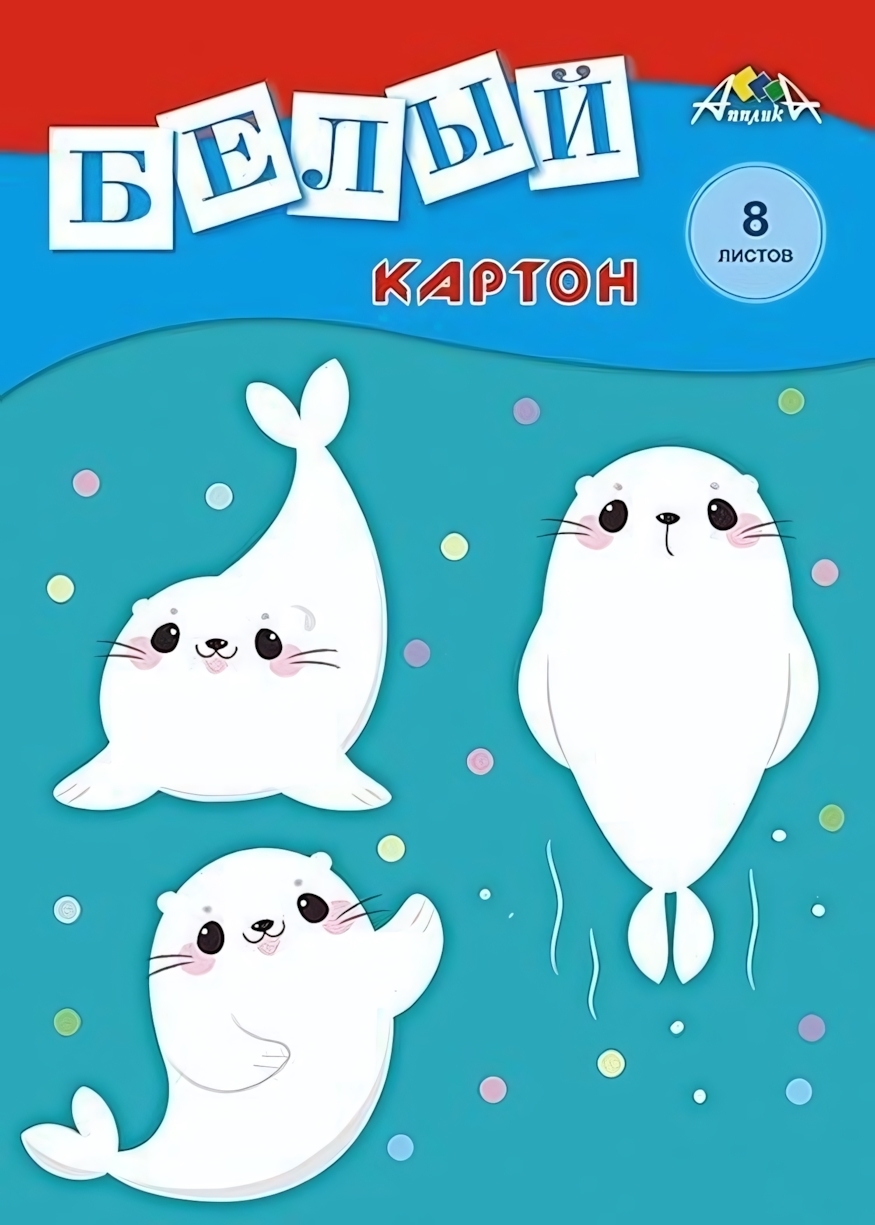 Картон белый А4, 8 листов, 'Веселые зверята', для детского творчества