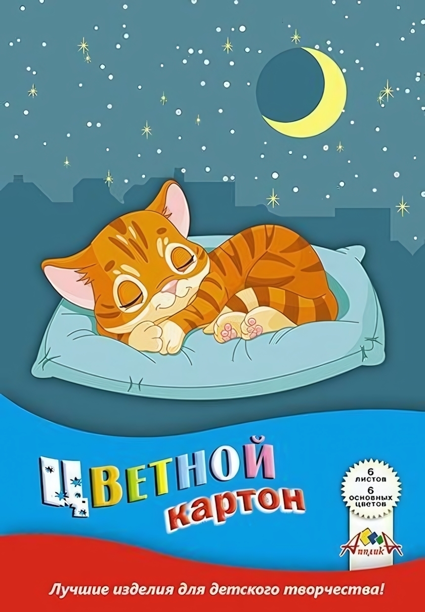 Картон цветной «Сладкие сны» А4, 6 листов, 6 цветов, немелованный, для аппликаций и творчества