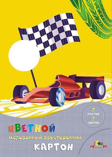 Картон цветной двусторонний А4 7 листов, 7 цветов «Гонки», мелованный