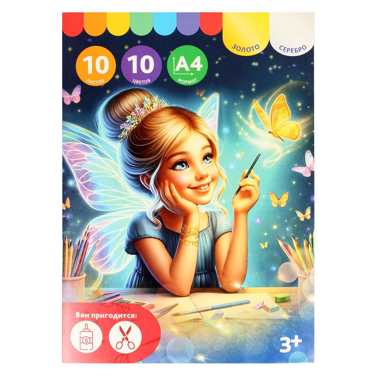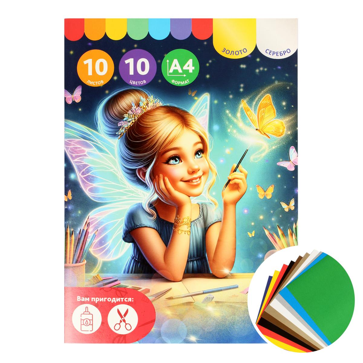 Цветной картон 'Фея' А4, 10 листов/цветов, немелованный, для творчества