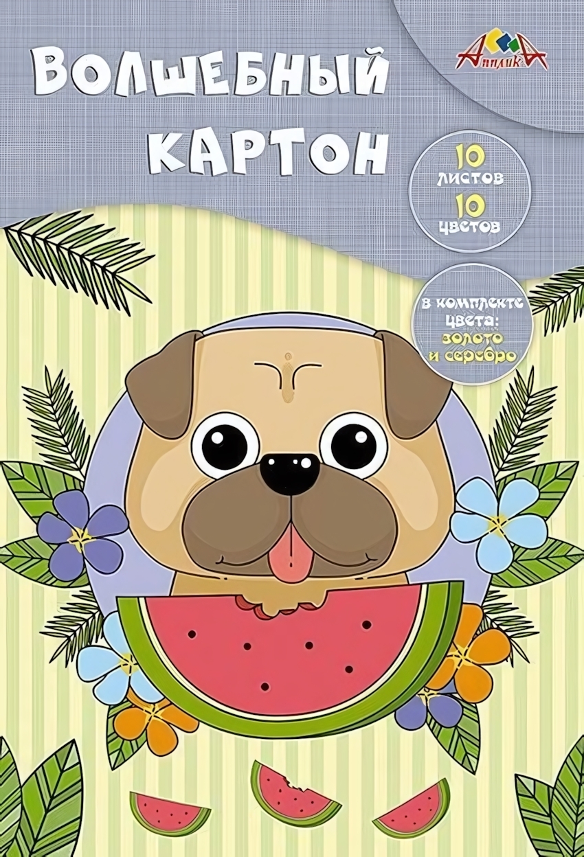 Цветной картон А4, 10 листов/цветов, с золотом и серебром, для детских поделок