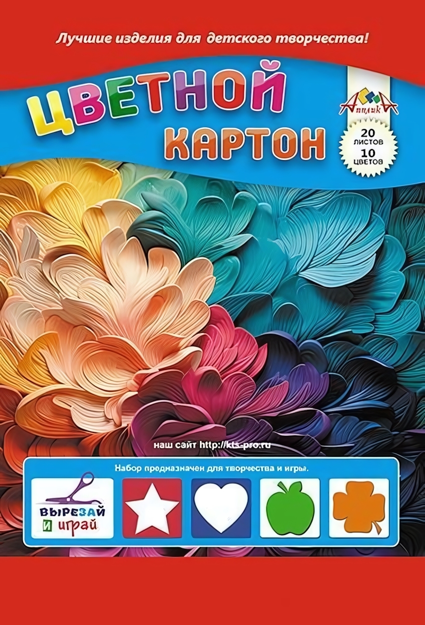 Подарите ребёнку возможность создавать объёмные аппликации и поделки с картоном насыщенных оттенков. 10 базовых цветов стимулируют цветовосприятие, а плотная структура материала учит аккуратности в работе.
