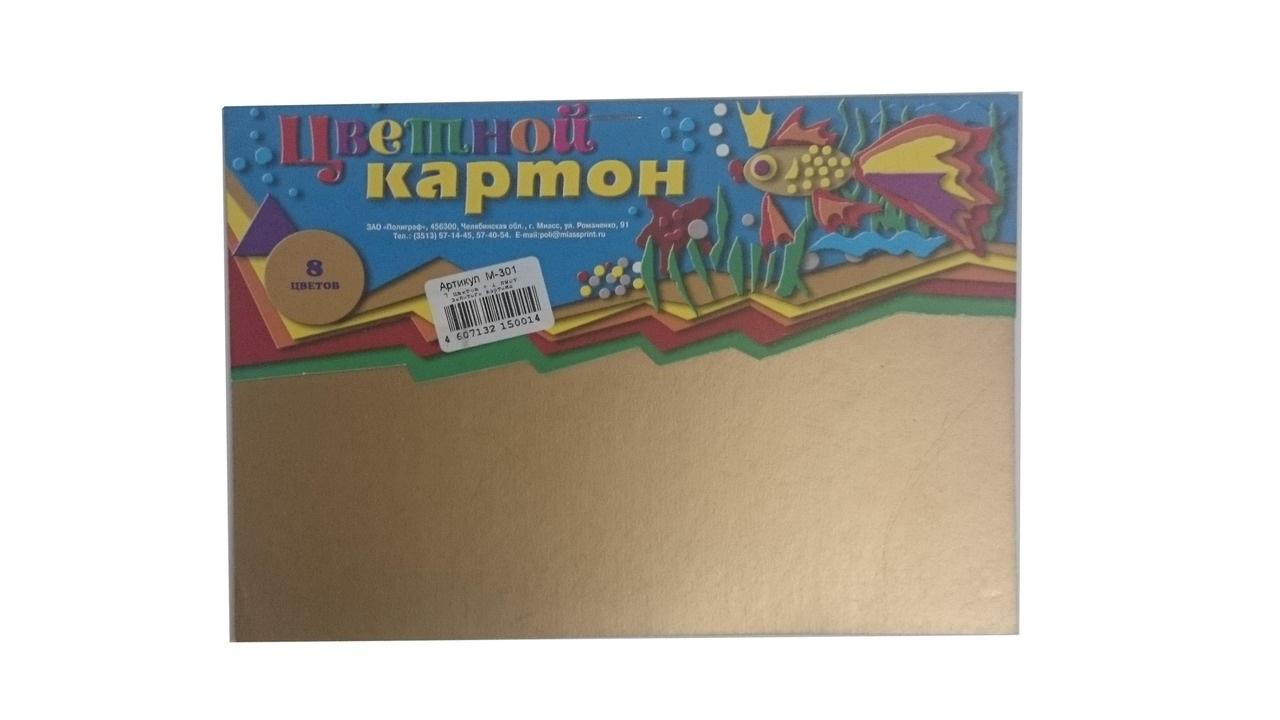 Картон цветной А5, 8 листов, 7 цветов+золото, плотность 220г/м²