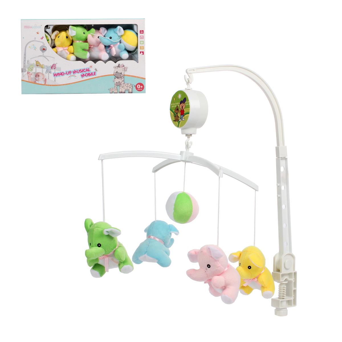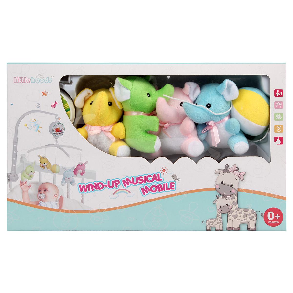 Музыкальная карусель «5203B» с 5 мягкими игрушками, успокаивающий мобиль, пластик/текстиль
